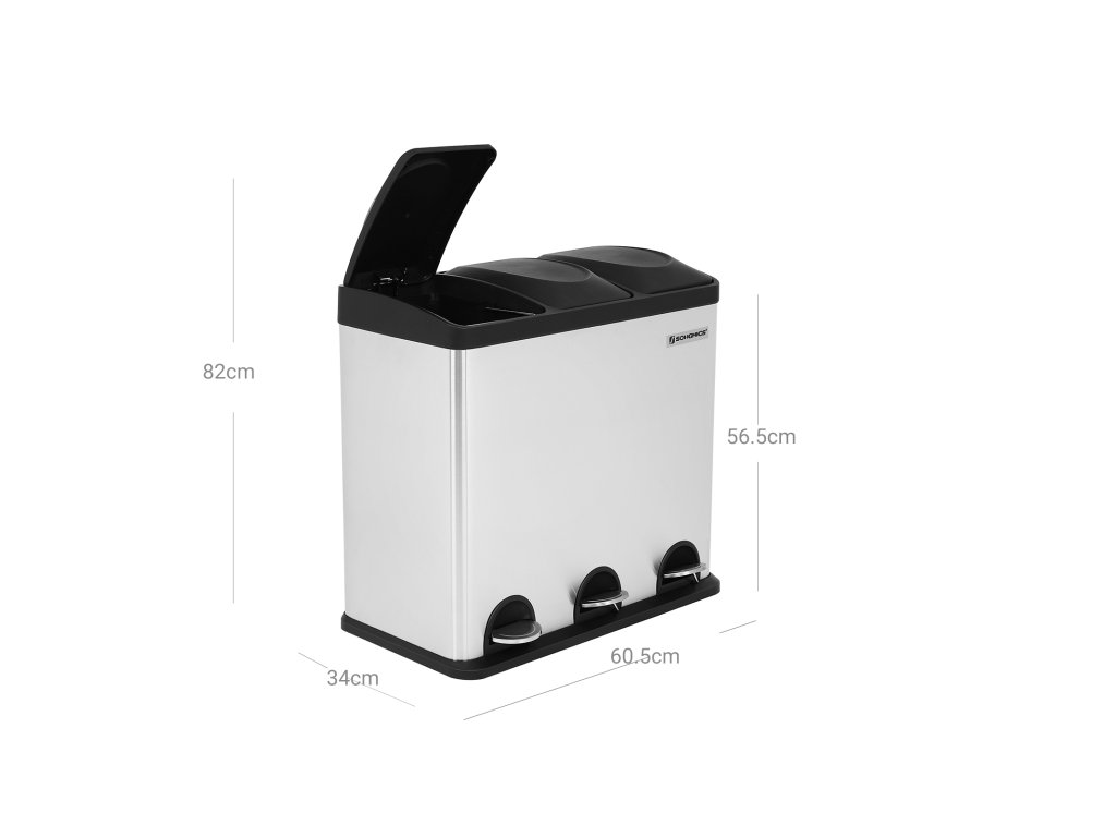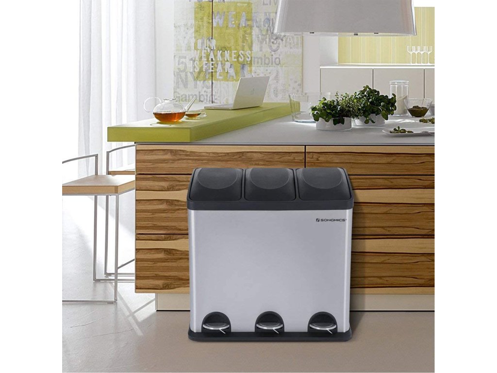 KOUZLO PRO VAŠI KUCHYNI: Váš odpadkový koš nemusí vypadat jako odpadkový koš; díky elegantním barvám a jednoduché siluetě bude tento odpadkový koš v kuchyni poutat pozornost.KROK PRO TŘÍDĚNÍ PŘI PŘEHAZOVÁNÍ: Tento pedálový koš má 3 sekce, díky nimž je třídění recyklovatelných odpadů hračka; nejlepší na tom je, že to lze provést, aniž byste se koše dotkli.BEZPROBLÉMOVÁ RECYKLACE: Tento odpadkový koš s celkovou kapacitou 54 l pojme jakýkoli odpad, který chcete vyhodit, například slupky od ovoce, sáčky od potravin, vaječné skořápky a další. ušetříte si časté vysypávání košů.KYBLÍK V KOŠI: Součástí balení jsou 3 vyjímatelné vnitřní kyblíky s praktickými držadly, takže je můžete snadno vyjmout a vyčistit, pokud se pytel na odpadky náhodou rozbije a vysype.CO ZÍSKÁTE: Koš na odpadky o objemu 54 l se 3 sekcemi, praktickými pedály a vyjímatelnými vnitřními kbelíky pro snadnou likvidaci odpadu a bezproblémovou recyklaci.