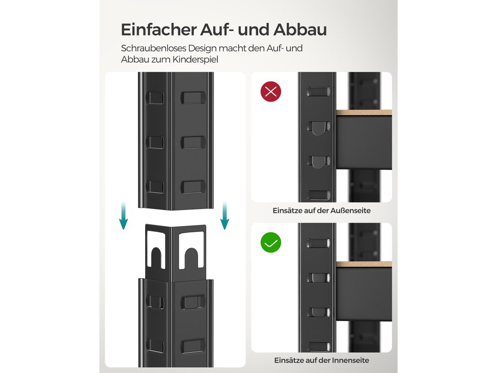 Dělitelná Tuto kovovou polici lze rozdělit na 2 samostatné jednotky, aby vyhovovala vašim potřebám a úložnému prostoru. Po rozdělení se skvěle hodí i jako pracovní stůl s úložným prostorem. Nastavitelné police: každou úroveň lze snadno nastavit po 3 cm, což vyhovuje vašim potřebám pro ukládání předmětů různých velikostí [Velké rozměry, velká kapacita] Tento regál o rozměrech 30 x 75 x 150 cm a celkové nosnosti 650 kg lze použít v garáži, skladu, sklepě nebo prádelně k uspořádání veškerého nářadí a vybavení. JEDNODUCHÁ MONTÁŽ BEZ ŠROUBŮ - Díky zámkové konstrukci a jasným pokynům se tento robustní regál snadno montuje.| Kategorie: | Regály a poličky |
