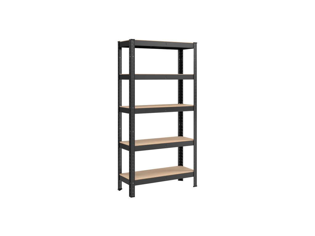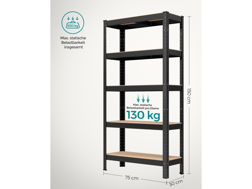 5patrový ocelový regál bez šroubů, garážový regál s nosností 650 kg, 30x75x150cm, černý.