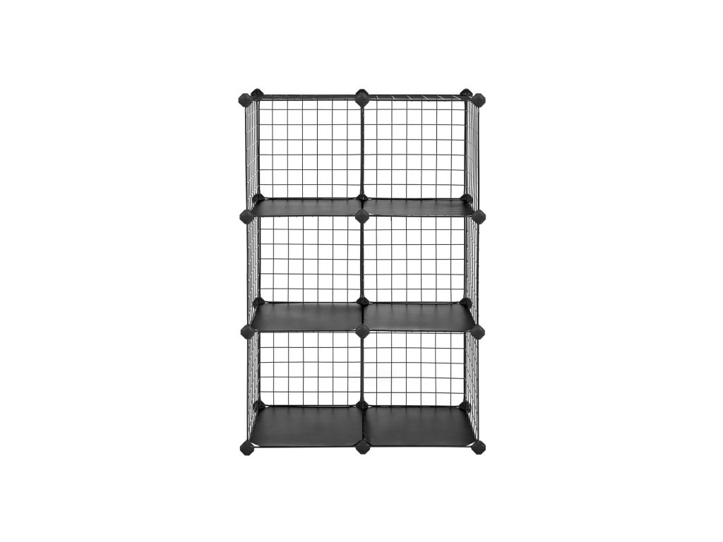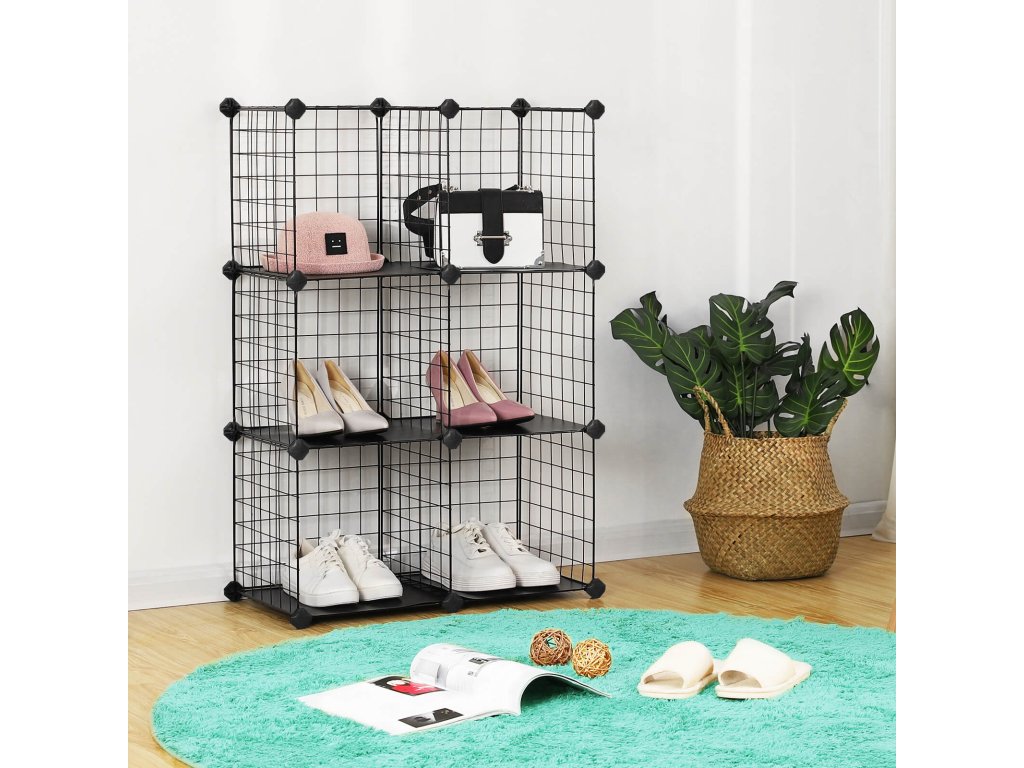 6-ti kostkový kovový drátěný úložný regál, propojovací regál s kovovými drátěnými policemi, PP plastové desky na knihy boty hračky oblečení nářadí, v obývacím pokoji, 93 x 31 x 93 cm, černá.