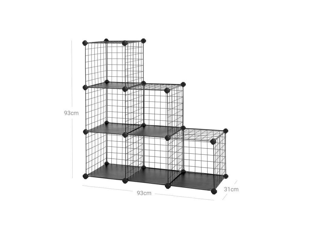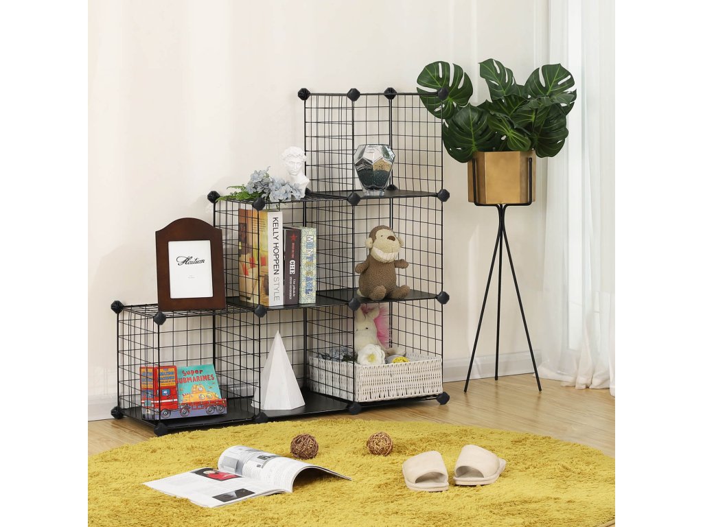 PODLE VAŠICH POTŘEB: Kovový úložný regál se 6 kostkami si můžete sestavit podle svých představ. Schodišťový tvar, obdélníkový tvar, kostka na kostce - přizpůsobte si tento regál svému prostoru.Dostatek místa na drobnosti v životě: Do otevřených přihrádek tohoto regálu ve tvaru kostky můžete umístit plyšová zvířátka, knihy, oblečení nebo boty. Pokud chcete ukládat menší předměty, zakryjte síťové police jednou ze 6 vložek z PP, které jsou součástí dodávky.CO ZNAMENÁ PŘIZPŮSOBENÍ? Jistě "Vyrobte podle požadavků!" Zde to však také znamená, že tento stupňovitý úložný regál lze díky chytré zásuvné konstrukci v mžiku sestavit a rozebrat.
