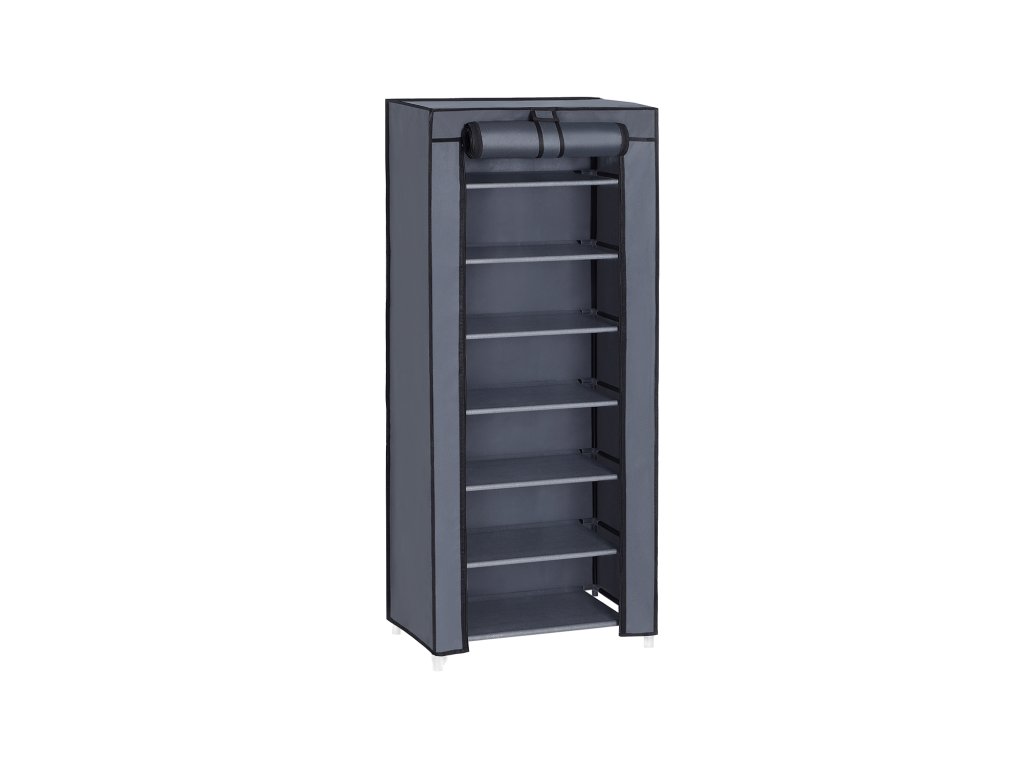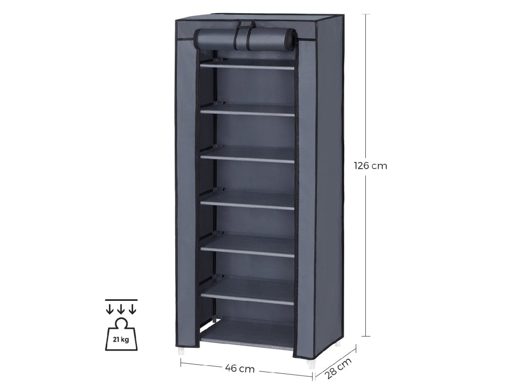 7patrový botník, skříňka na boty s potahem z netkané textilie, organizér na boty, prachotěsný, na podpatky, tenisky, boty, snadná montáž, 46 x 28 x 126 cm, šedá.