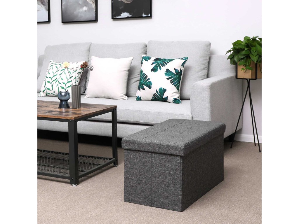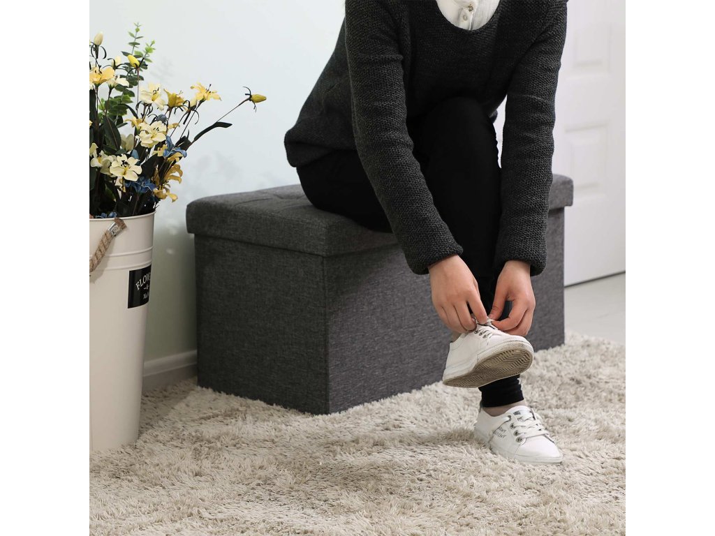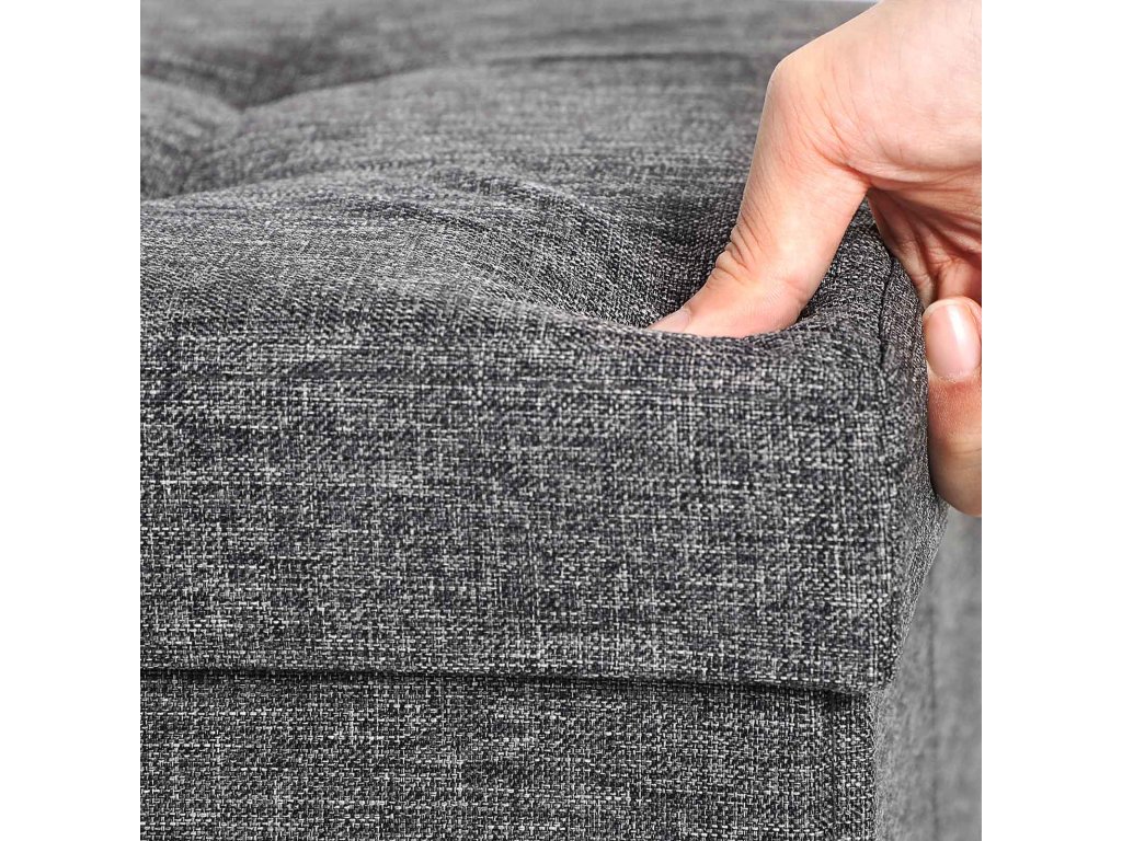 Vysoká nosnost a vynikající komfort sezení: lavička je certifikována TÜV Rheinland (max. statická nosnost: 300 kg, lavička je ideální pro 2 osoby; tmavě šedá plátěné polstrování zajišťuje dobrý pocit při sezení a dokonale se hodí ke všem typům nábytku;Pevná a odolná truhla z MDF (třída E1) zajišťuje vysokou stabilitu a jako nepostradatelný kus nábytku je ideální jako botník, podnožka nebo rozkládací pohovka.