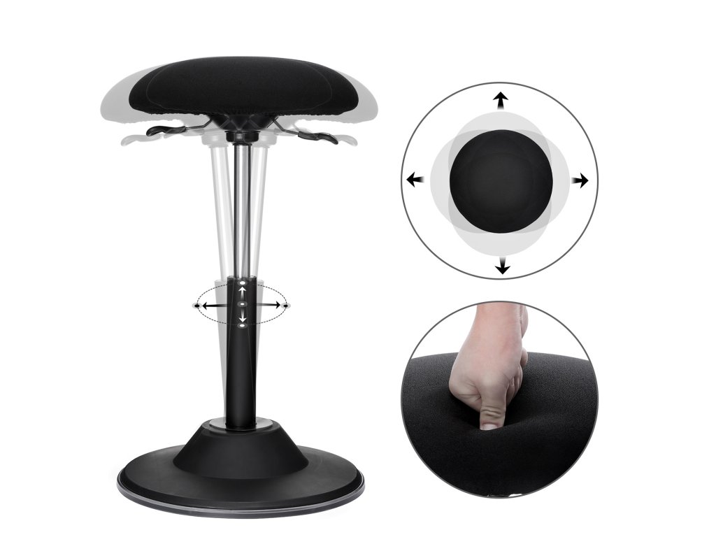 AKTIVNÍ SEDACÍ STOLKA: Pořiďte si tuto ergonomickou pracovní stoličku, která se mírně otáčí a naklání, abyste byli po celý den plní energie a produktivní.DOBŘE VYČALOŽENÉ SEDADLO: Čalounění z reflexní pěny o vysoké hustotě 6,6 cm zajišťuje pohodlné sezení na velkém sedadle (průměr 41 cm), které se nedeformuje ani po dlouhodobém používání.NASTAVENÍ VÁŠI IDEÁLNÍ VÝŠKY: 2 páčky jsou umístěny pod sedákem; můžete je stisknout a nastavit tak výšku stoličky od 50 cm do 70 cm, aby vyhovovala vašim různým požadavkům.MONTÁŽ JE SNADNÁ: Stačí vložit tyč do otvorů v základně a sedadle, není třeba žádné nářadí.100% ZÁRUKA SPOKOJENOSTI: Poskytujeme individuální a profesionální zákaznický servis před i po nákupu, takže už nečekejte a užijte si ho hned.| Kategorie: | Kancelářské židle |