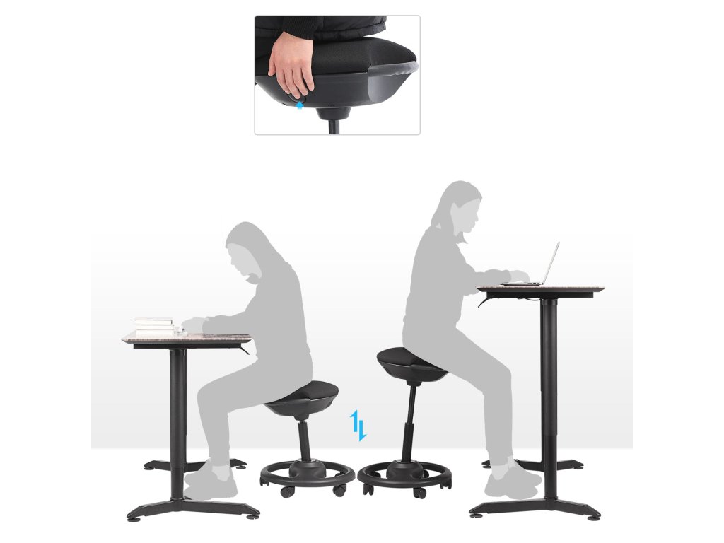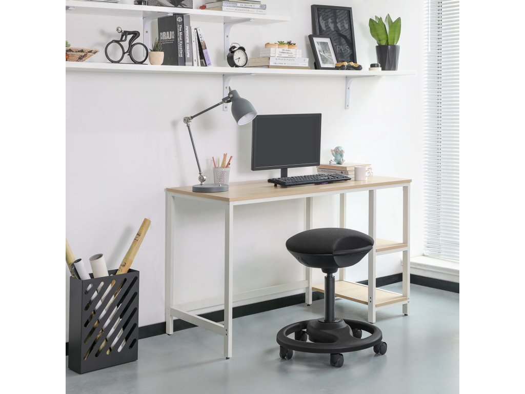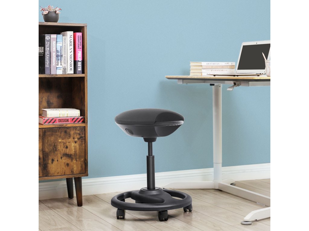 Aktivita na pracovišti: práce v kanceláři neznamená, že musíte každý den strnule sedět u počítače. Přistavte si tuto výškově nastavitelnou pracovní stoličku 55-73 cm ke stolu kolegy a diskutujte o svém nejnovějším projektu. Nakloňte židli o 10°, abyste zůstali v pohybu a ulevili svému pánevnímu dnu.Extra velká sedací plocha: odsuňte svou starou nepohodlnou kancelářskou židli a pohupujte se na této kancelářské stoličce! Průměr 42 cm 5 cm tlusté sedadlo s pěnovým polstrováním vám umožní zapomenout na někdy nudný kancelářský život.Stabilita na zemi: stylová základna zajišťuje, že stolička na kolečkách neztrácí stabilitu, ať už sedíte v jakékoli poloze. Průměr 50 cm, stabilizátor ve tvaru volantu, který unese až 110 kg.Brzdový mechanismus sedadla: odolná PU kolečka se z bezpečnostních důvodů zablokují, jakmile se na stoličku posadíte. Vstaňte a zatáhněte za integrovanou rukojeť, abyste brzdový mechanismus deaktivovali. Robustní kolečka navíc nezanechávají na podlaze žádné škrábance.Co získáte: inovativní kancelářskou židli z odolných materiálů, která se může kutálet, brzdit i otáčet a dostat se do šikmé polohy. Náš zákaznický servis je vám samozřejmě také aktivně k dispozici.| Kategorie: | Kancelářské židle |
