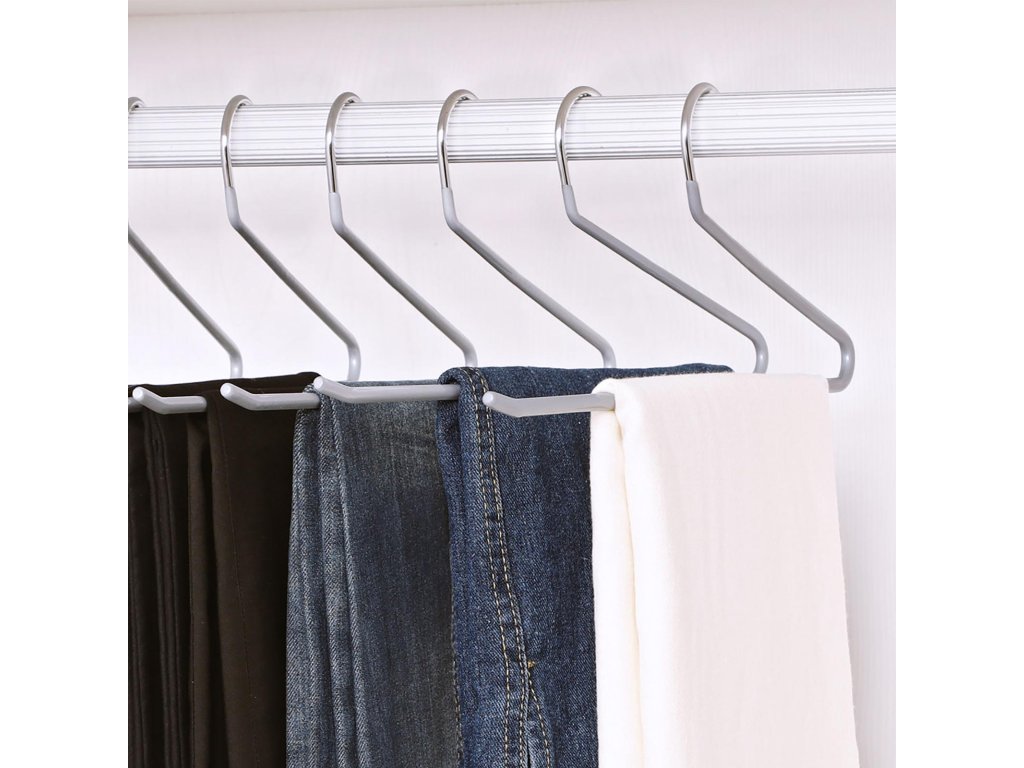 Balení 20 kovových věšáků na kalhoty s otevřeným koncem a protiskluzovým povrchem, šetří místo, šířka 38 cm, šedá.