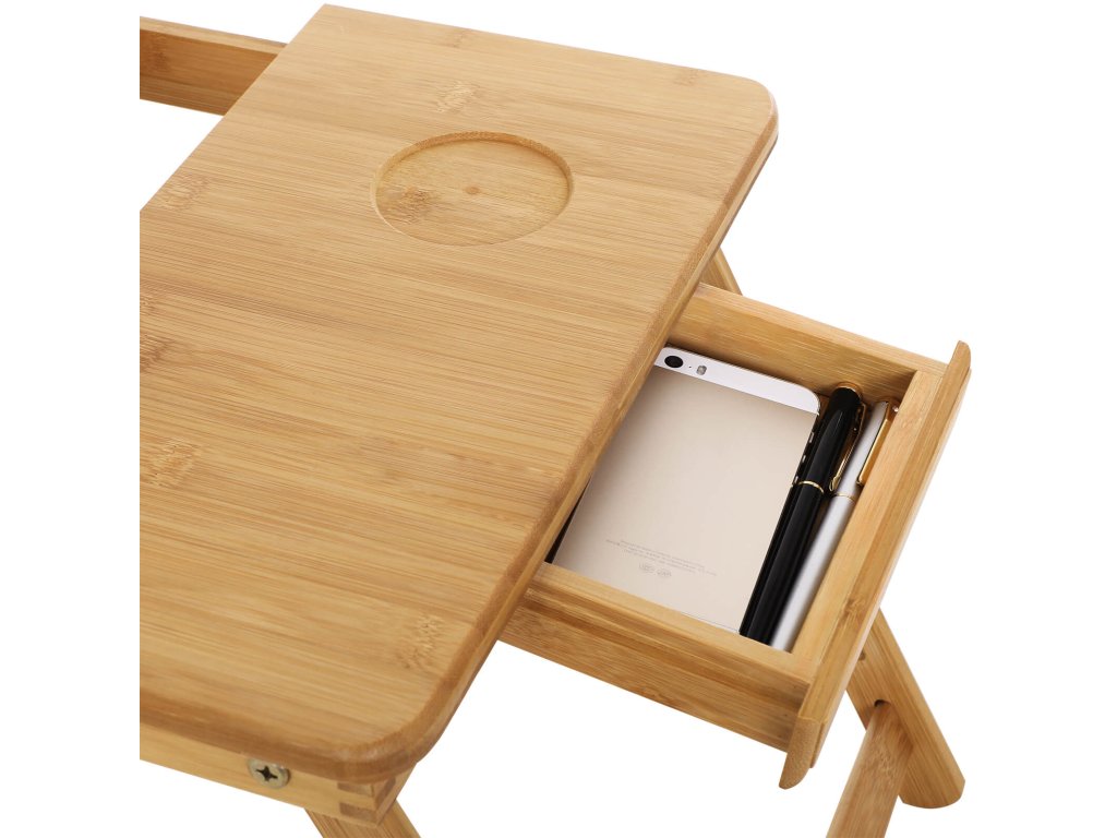 ROBUST: Konferenční stolek je vyroben výhradně z přírodního bambusu, je pevný a zároveň není objemný, jeho konstrukce je jednoduchá, velmi odolná a dobře zpracovaná.SKLÁDACÍ A NASTAVITELNÝ: Skládací stůl, nohy jsou výškově nastavitelné (prodloužení nohou cca 10 cm), snadno se rozhodnete pro přesnou výšku a budete mít dostatek místa pro nohy.VELKÁ PLOCHA: Celková velikost plochy: 55 x 35 cm, poskytuje dostatek prostoru pro práci. A na sklopném stole (rozměry 36,5 x 35 cm, náklon nastavitelný do 4 různých poloh) je místo pro 15palcový notebook a na vedlejším patře můžete používat myš.UŽITEČNÝ DESIGN: Při používání počítače je zde prostor pro externí myš, boční zásuvka a malá skleněná přihrádka na nápoj. Také krásný design rytin na základně umožňuje dokonalé větrání počítače.PRAKTICKÉ: Vhodný a praktický stolek pro ty, kteří rádi čtou, studují, pracují pohodlně na posteli nebo na pohovce! Vhodný jak na notebook, ale také na příjemnou snídani do postele.| Kategorie: | Podložky a stojany k notebookům |