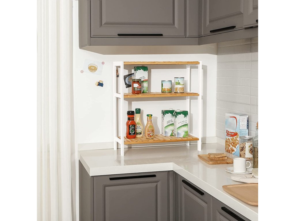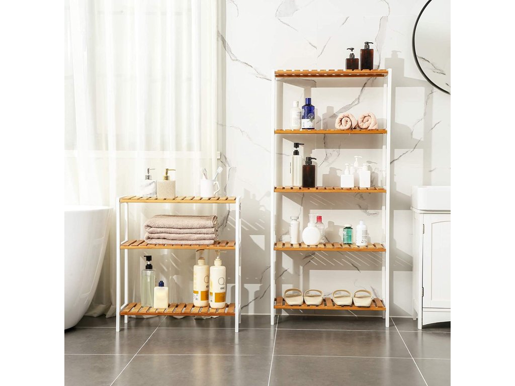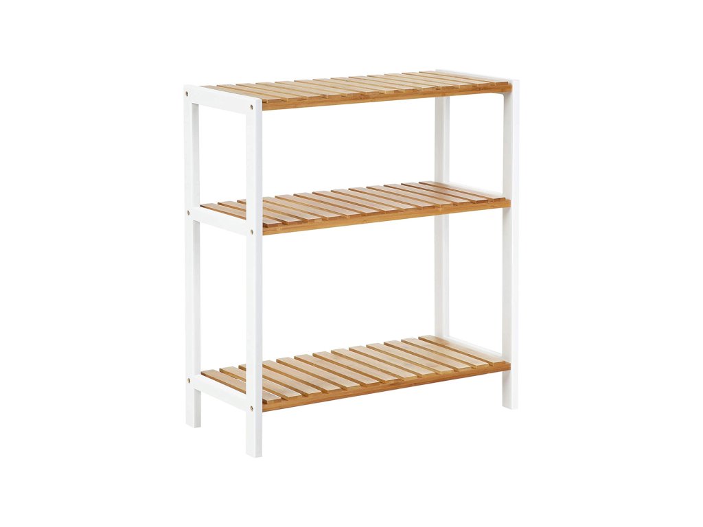 Bambusový úložný regál, třípatrový botník, víceúčelový, do předsíně, koupelny, obývacího pokoje, na balkon, do kuchyně, přírodní a bílý.