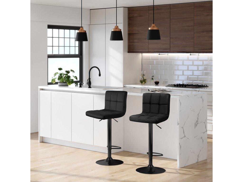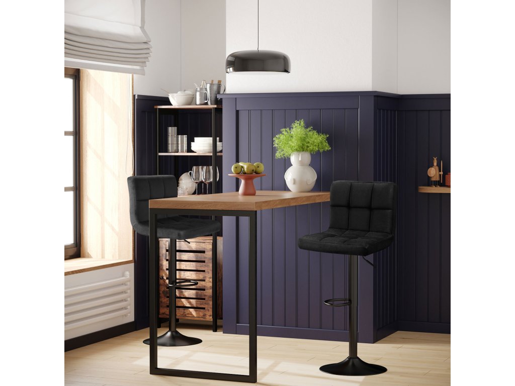Dokonalý pár: dopřejte si malou zónu pohody, ve které můžete posnídat se svou drahou polovičkou. Tato sada 2 barových stoliček je stylovým doplňkem vašeho kuchyňského ostrůvku.Vysoké pohodlí: barové židle jsou polstrované 6 cm silnou pěnou a potažené prvotřídním sametem a poskytují maximální pohodlí. Opěradlo a podnožka umožňují také malou přestávku a výšku barových židlí lze nastavit podle potřeby.Stejně snadné jako 1x1: 4 šrouby, 3 kroky a je to. Tyto židle se snadno montují, takže nemusíte hodiny zápasit s maticemi a šrouby. Strávíte více času se svou rodinou!Bezpečná základna: práškově lakovaný kovový rám a velká základna (průměr 41 cm) zajišťují nosnost 120 kg na židli. Tyto židle tak poskytují pevný úchop, i když se při sledování televize otočíte.Co získáte: 2 stylové a výškově nastavitelné barové židle se sametovým potahem a podnožkou, které dodají vašemu jídelnímu prostoru tu správnou atmosféru baru.| Kategorie: | Barové židle |