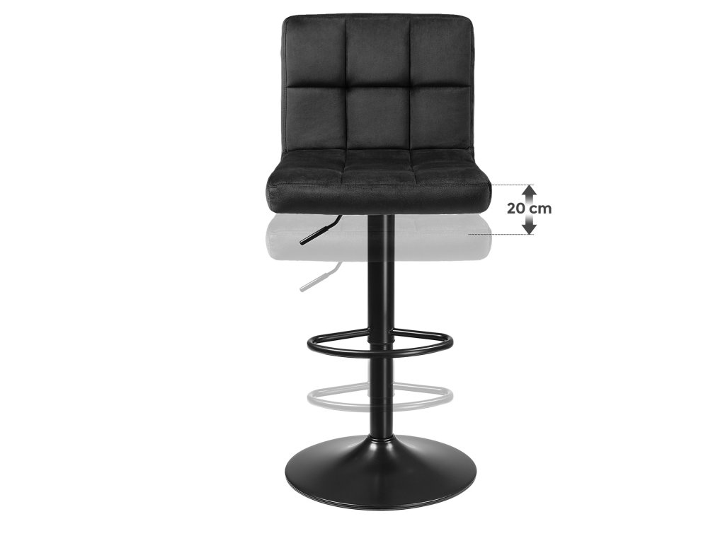 Barové židle, sada 2 kusů, barové židle se sametovým povrchem a nastavitelnou výškou, otočná kuchyňská židle s opěradlem a podnožkou, kov, černá.
