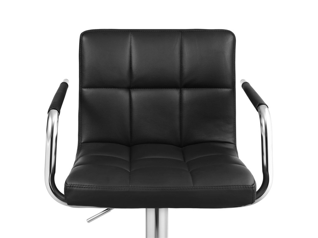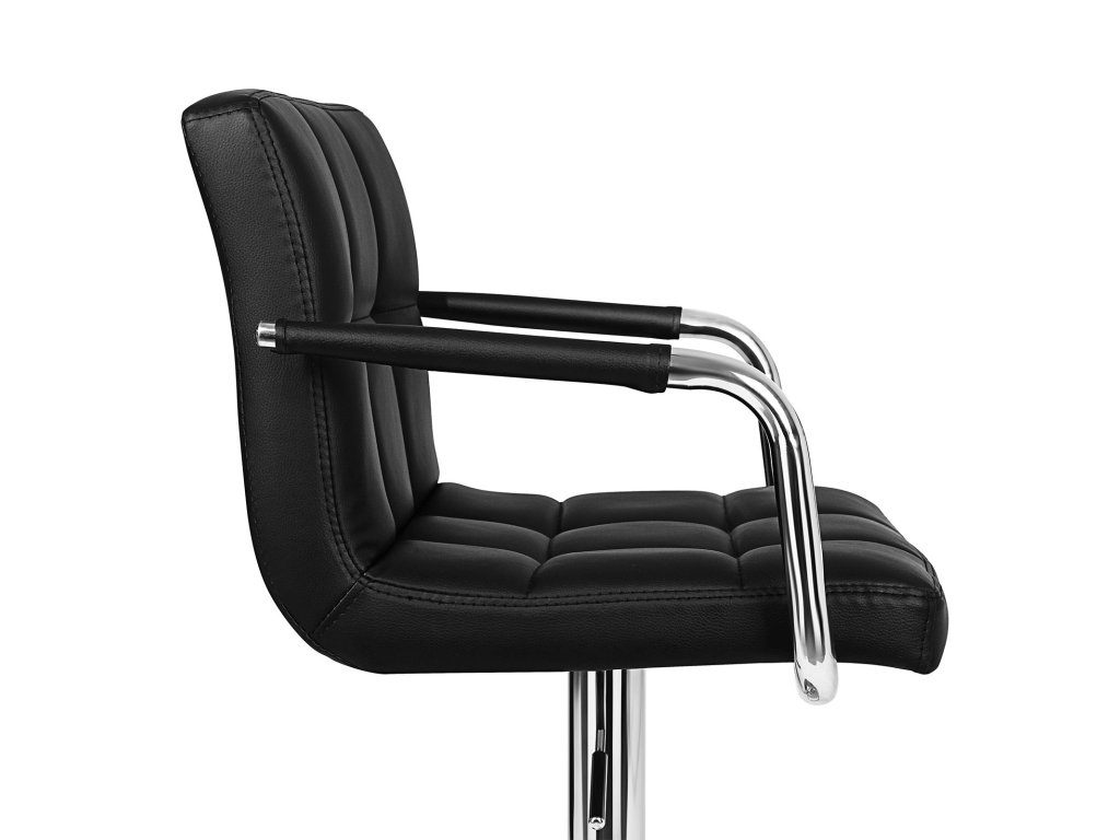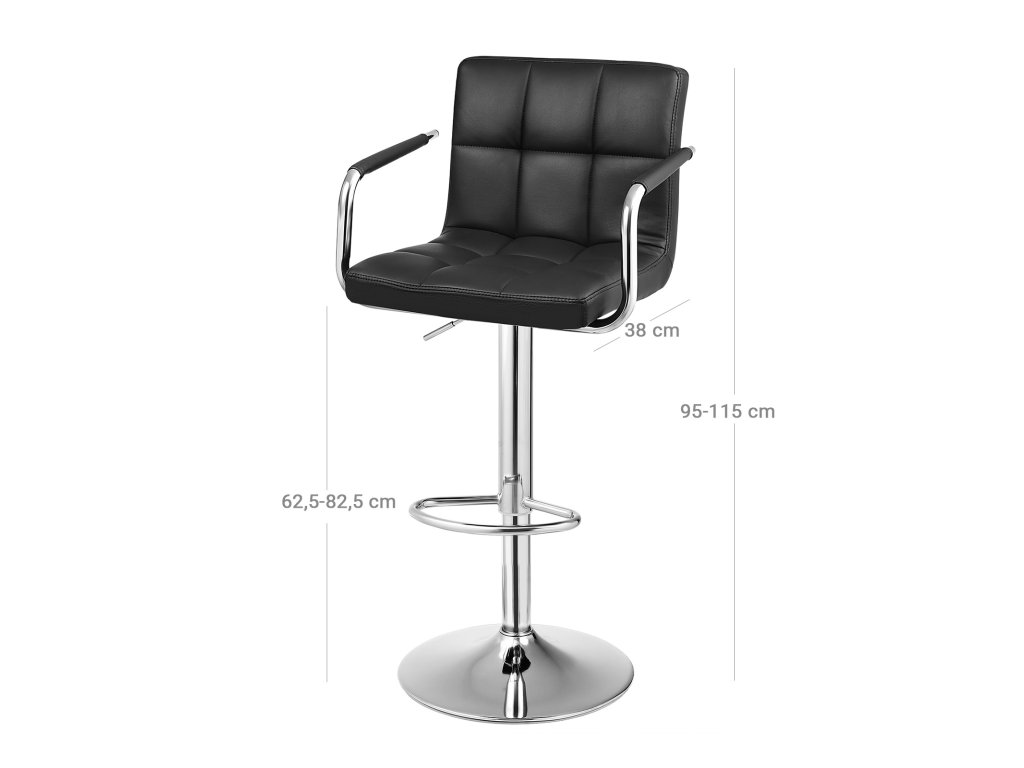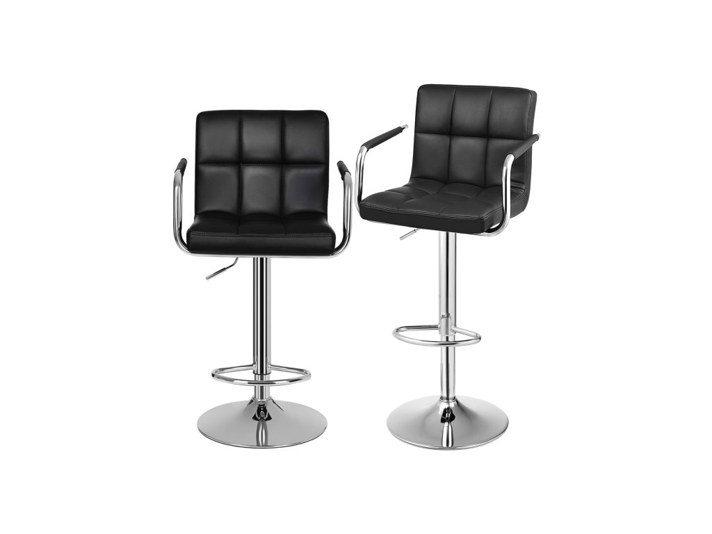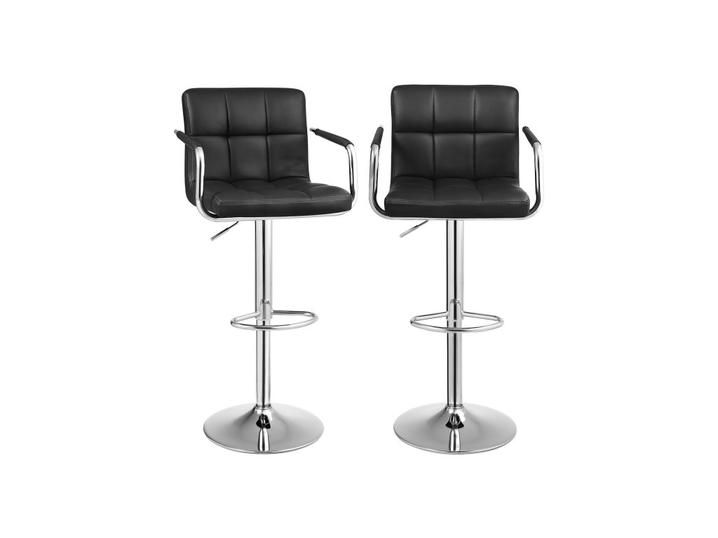 Barové židle, sada 2 kusů, vysoké židle, nastavitelná výška, potah PU, otočné o 360°, s područkami, opěradlem a opěrkou na nohy, chromová podnož, černé.