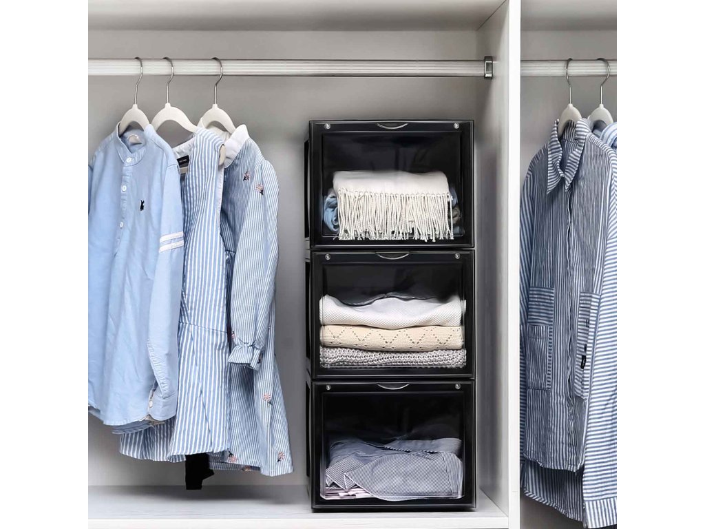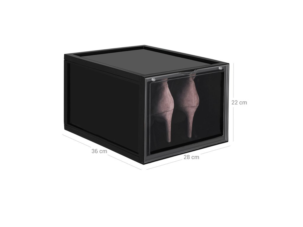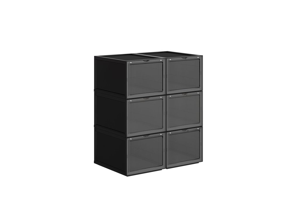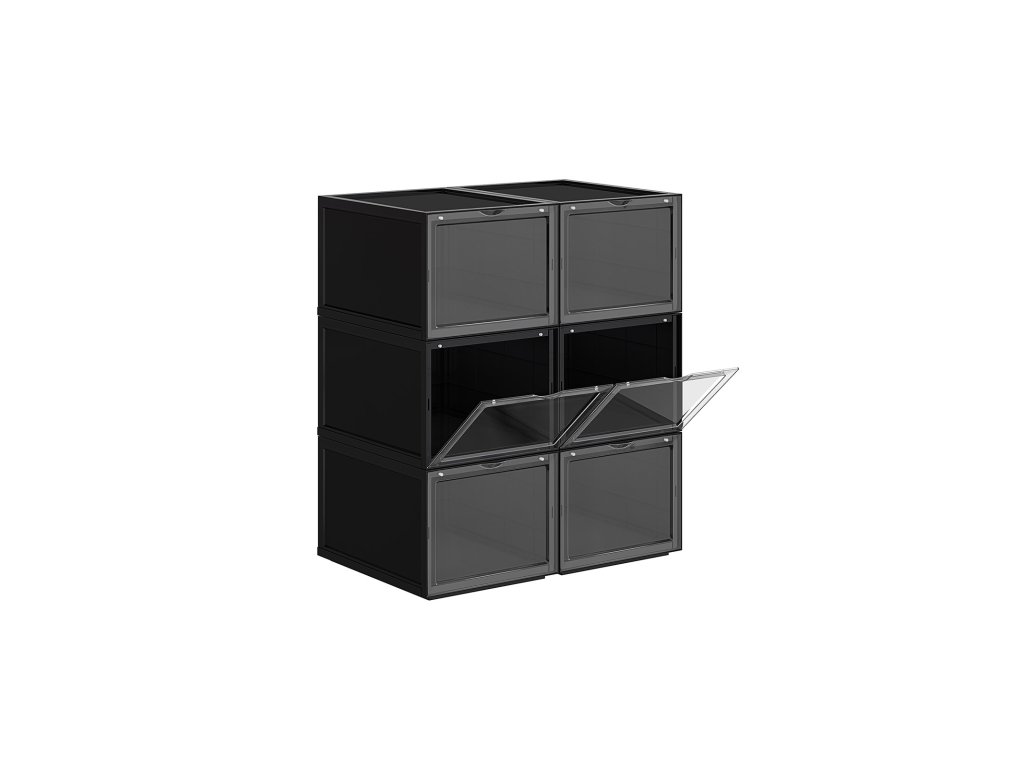 UŽ ŽÁDNÉ ROZHÁZENÉ BOTY: Rozptylují vás boty rozházené po celém domě? Každá krabice v této sadě 6 boxů na boty (26,5 x 33 x 19 cm) je vybavena speciální krabicí na boty. vnitřní velikost) je dostatečně široká, aby se do ní vešel pár bot až do velikosti UK 11 a byl v nich pořádek.JSME JINÍ: Na rozdíl od jiných krabic na boty s víkem, které vás nutí s krabicemi pohybovat, abyste je otevřeli, jsou naše krabice na boty vybaveny průhlednými předními dvířky, abyste mohli boty snadno uchopit.STÁHOVAT JEDEN NA DRUHÝ: Tyto boxy jsou vyrobeny z odolného a pevného černého plastu a lze je stohovat; jedinečný design drážek v horní části zajišťuje, že boxy do sebe zapadají, aniž by se posouvaly nebo posouvaly.Jednodušší, než si myslíte: Naše krabice, které šetří místo, jsou zasílány v rozloženém stavu, takže na místo určení dorazí v pořádku; nebojte se, v balení najdete jasné pokyny, takže je sestavíte během několika minut;VŠESTRANNÉ POUŽITÍ: Jejich elegantní vzhled dodá každému prostoru kouzlo: lze je použít nejen na boty, ale také jako úložné boxy na dětské hračky, CD, ručníky, svetry nebo řemeslné potřeby.| Kategorie: | Botníky |