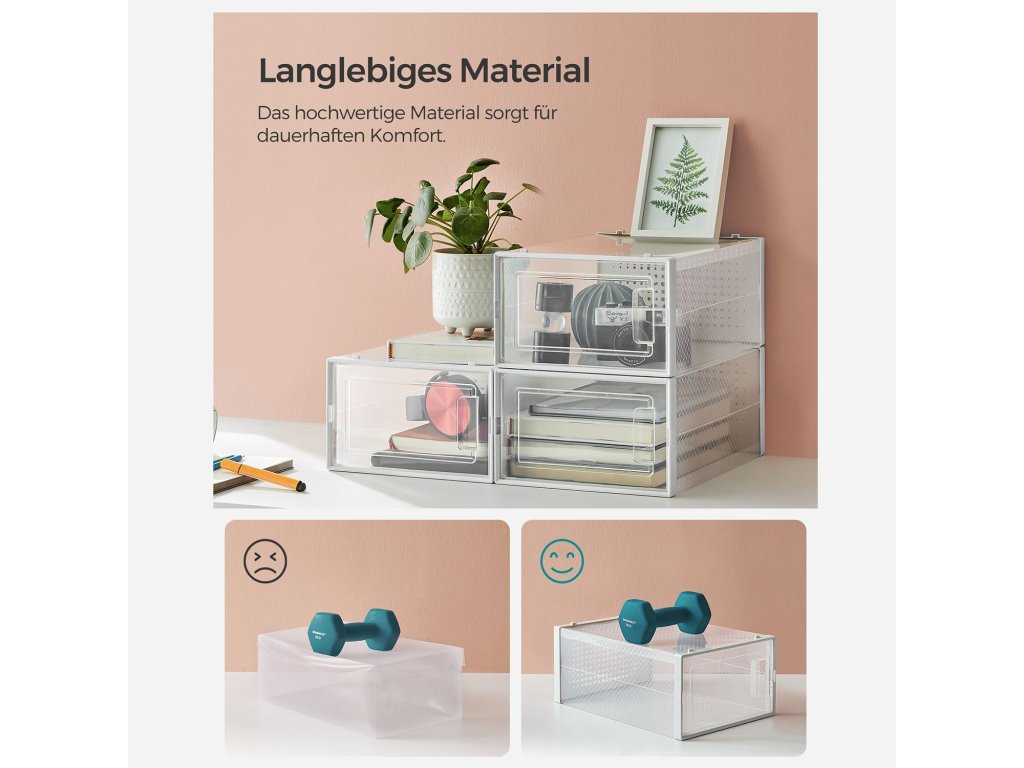 Nakopněte nepořádek do země: Pokud se váš domov pomalu, ale jistě mění v nepořádek z bot proč je neuspořádat v tomto balení 12 klasických krabic na boty s průhledným tělem a předními dvířky? Prohlédněte si celou svou sbírku v pořádkuPřehled: Nemusíte každé ráno vyndávat a prohrabávat krabice od bot a hledat boty na dojíždění. průhledné tělo s průhlednými předními dvířky vám umožní nahlédnout dovnitř vaší věže kopaček s lehkostí uchopení a odhození.Nastavení je hračka: Vnitřní rozměry těchto organizérů na boty jsou 30 x 22,5 x 13,5 cm, takže je můžete maximálně rozložit. UK velikost 10,5; každý pár tenisek, podpatků nebo lodiček bude mít své vlastní místo;Stack 'Em Up: Pokud chcete krabice uložit organizovaně, díky odpovídajícímu designu drážek na horní a spodní straně je jejich stohování hračka; větrací otvory umožňují botám dýchat.Co získáte: Balení 12 průhledných krabic na boty s průhlednými předními dvířky, stohovatelné a skládací provedení, větrací otvory. Dejte sbohem všude rozházeným botám a udělejte si v botách pořádek hned teď!Buďte první, kdo napíše příspěvek k této položce.