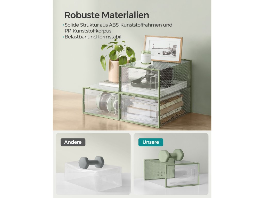 Kick Mess to the Curb Pokud se váš domov pomalu, ale jistě stává nepořádkem z bot. proč je neuspořádat v tomto balení 12 klasických krabic na boty s průhledným tělem a předními dvířky? Prohlédněte si celou svou sbírku v pořádkuKeep It Clear Nemusíte každé ráno vyndávat a prohrabávat krabice od bot a hledat boty do práce. průhledné tělo s průhlednými předními dvířky vám umožní nahlédnout dovnitř vaší věže kopaček s lehkostí uchopení a odhození.Snadné sestavení Stačí spojit přední a zadní část a získáte tyto organizéry na boty s vnitřními rozměry 30 x 22,5 x 13,5 cm pro max. UK velikost 11; každý pár tenisek, podpatků nebo lodiček bude mít své vlastní místo;Stack 'Em Up Pokud chcete krabice uložit organizovaně, díky odpovídajícímu designu drážek na horní a spodní straně je jejich stohování hračka; větrací otvory umožňují botám dýchat.Co dostanete Balení 12 průhledných krabic na boty s průhlednými předními dvířky, stohovatelný a skládací design, větrací otvory. Dejte sbohem všude rozházeným botám a udělejte si v botách pořádek hned teď!Buďte první, kdo napíše příspěvek k této položce.