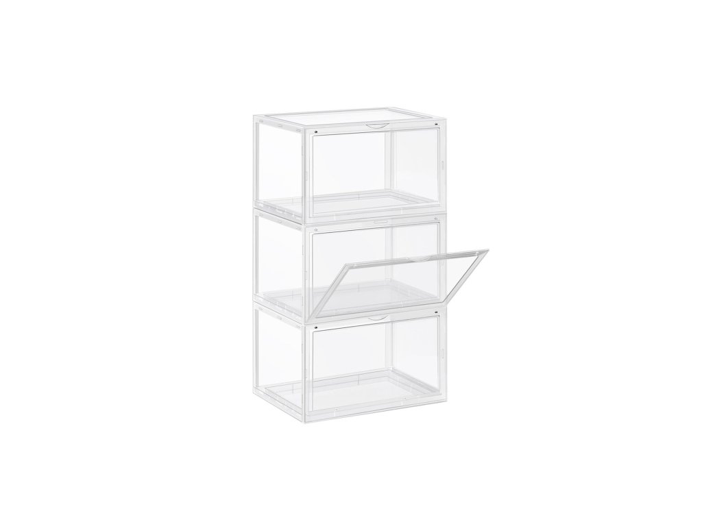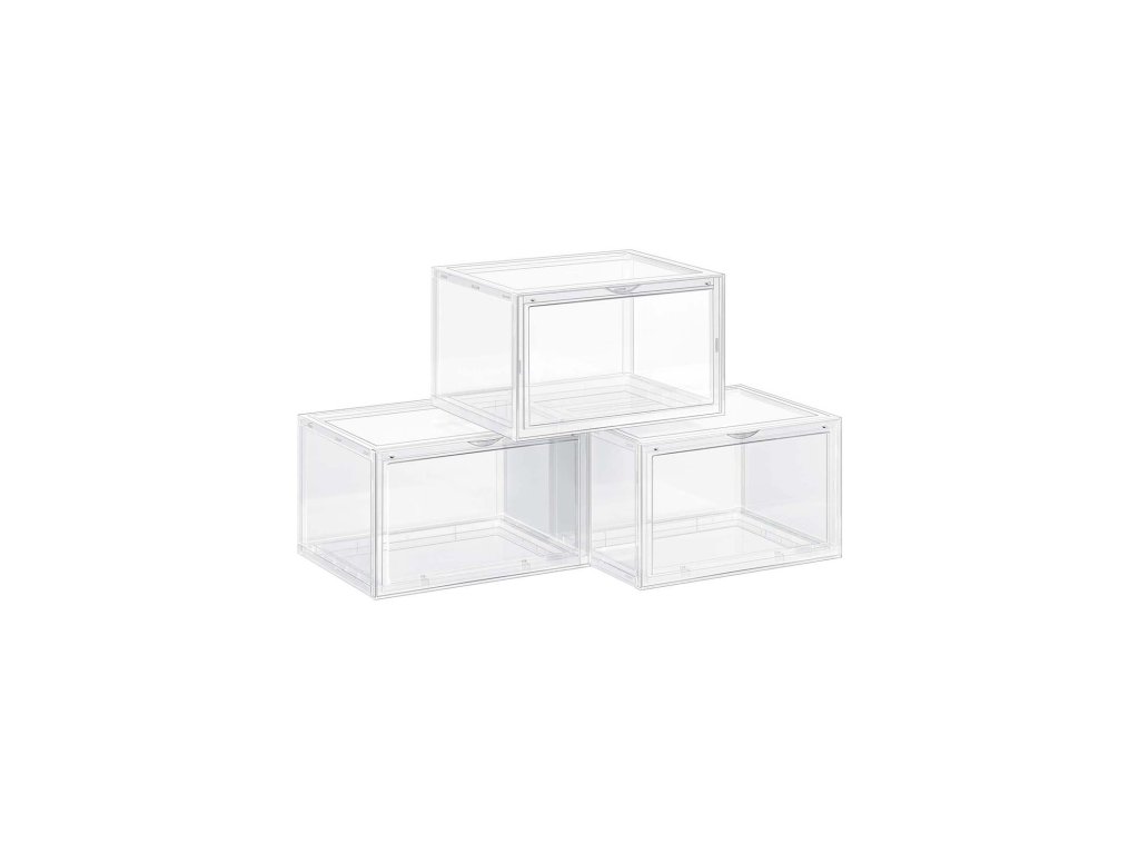 MILOVNÍCI BOT SE RADUJÍ! Ať už jste milovníci tenisek, nebo obdivovatelé designu, tato sada 3 průhledných krabic na boty vám díky svému průhlednému tělu, které zobrazuje jejich třpytivé detaily, zpěvavě ukáže vaše drahocenné boty.
