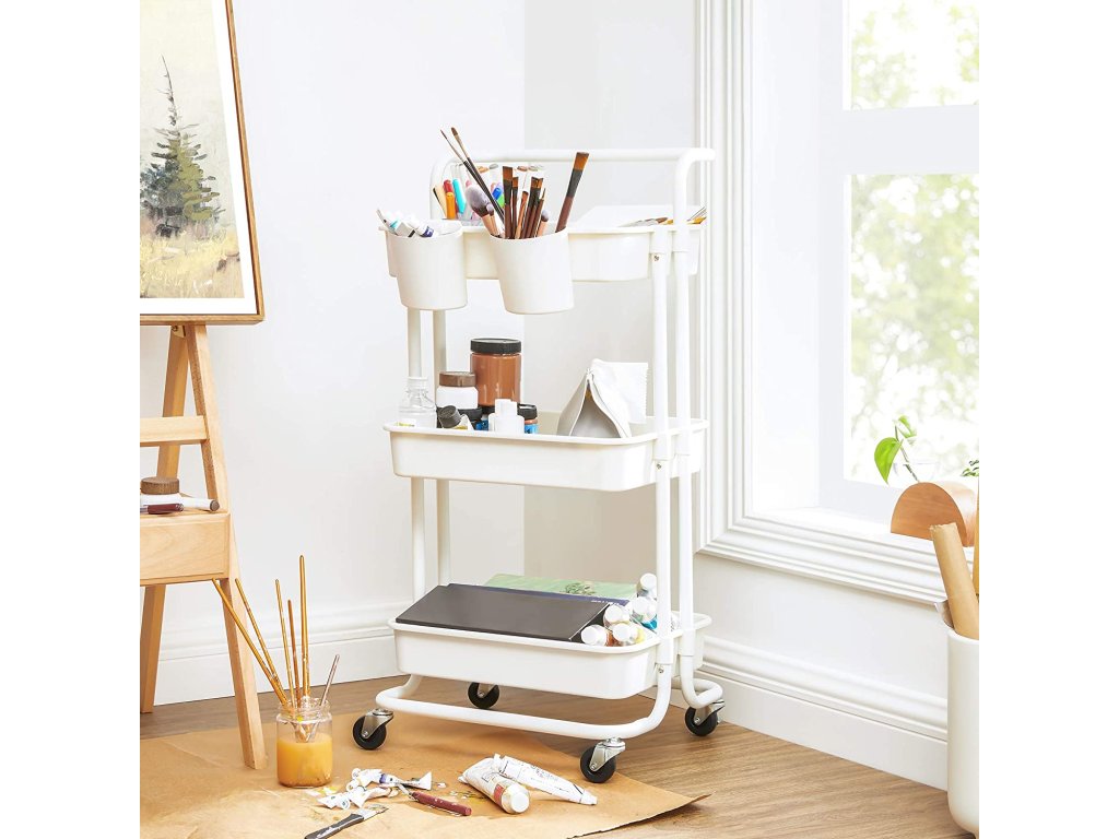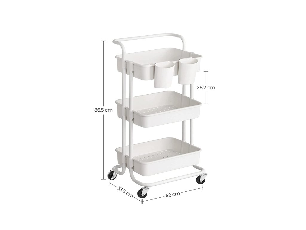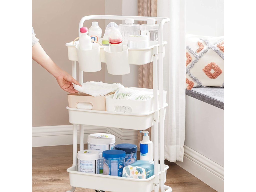 Kam vede malá vážicí linka? Do ložnice, dětského pokoje nebo do prádelny? 4 kolečka (z toho 2 uzamykatelná) a 1 rukojeť - Posuňte vozík tam, kam potřebujete, abyste mohli uložit pleny, knihy. malířské potřeby nebo čisticí prostředky