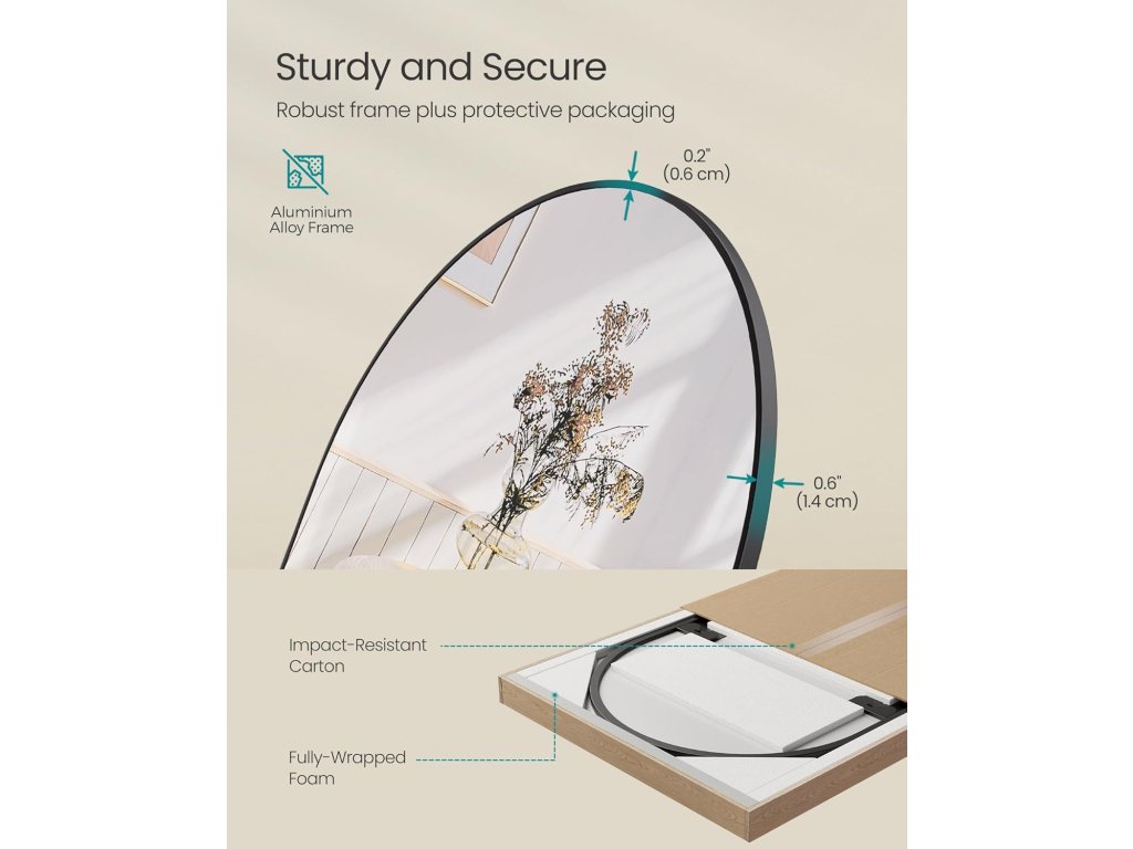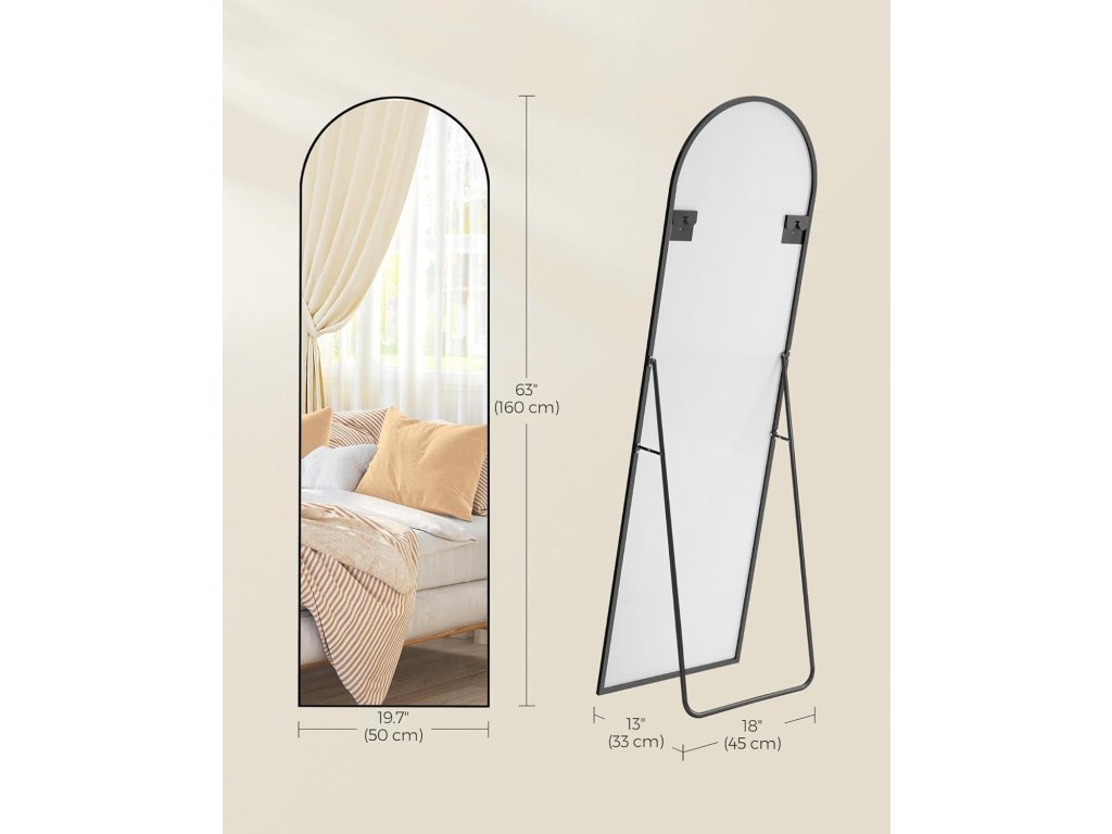 【PŘIPRAVENO K POUŽITÍ】 Toto zrcadlo v plné délce není třeba montovat, je připraveno k použití. Díky lehkému rámu jej lze snadno přemístit a umístit na libovolné místo v domácnosti.