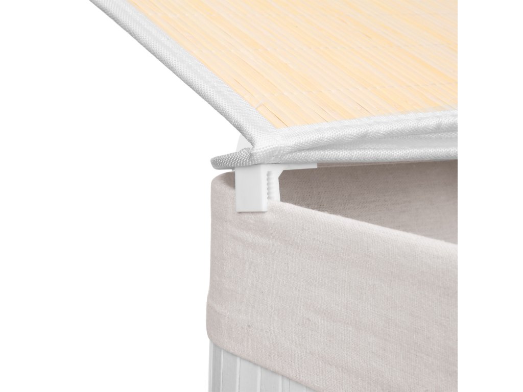NOVÉ ZAPÍNACÍ VÍKO: Klipová konstrukce usnadňuje práci - připnutí víka na koš nyní zabere jen několik sekund; snadno jej vyjmete, pokud chcete vyjmout vložku a přenést prádlo do pračky;PLNĚ MODERNIZOVANÁ STABILITA: Díky robustní desce připevněné k obložení je tato vylepšená základna stabilní, nikdy nevypadne a má statickou nosnost až 25 kg; džíny, svetry, zimní bundy a povlečení mohou být bez problémů v tomto koši na prádlo!;ODDĚLTE BARVY: Prodyšná bavlněná vložka je rozdělena na 2 části - jedna je určena pro světlé prádlo, druhá pro tmavé; smutný příběh, kdy se vaše nová bílá košile ušpiní od tmavých džínů, se už nebude opakovat;PROČ BAMBOO? Pokud si myslíte, že odolnost a trvanlivost jsou jediné důvody, proč je třeba možná budete překvapeni, když tento osvěžující koš na prádlo vyrobený z bambusových proužků dodá vašemu domovu trochu venkovského šarmu.