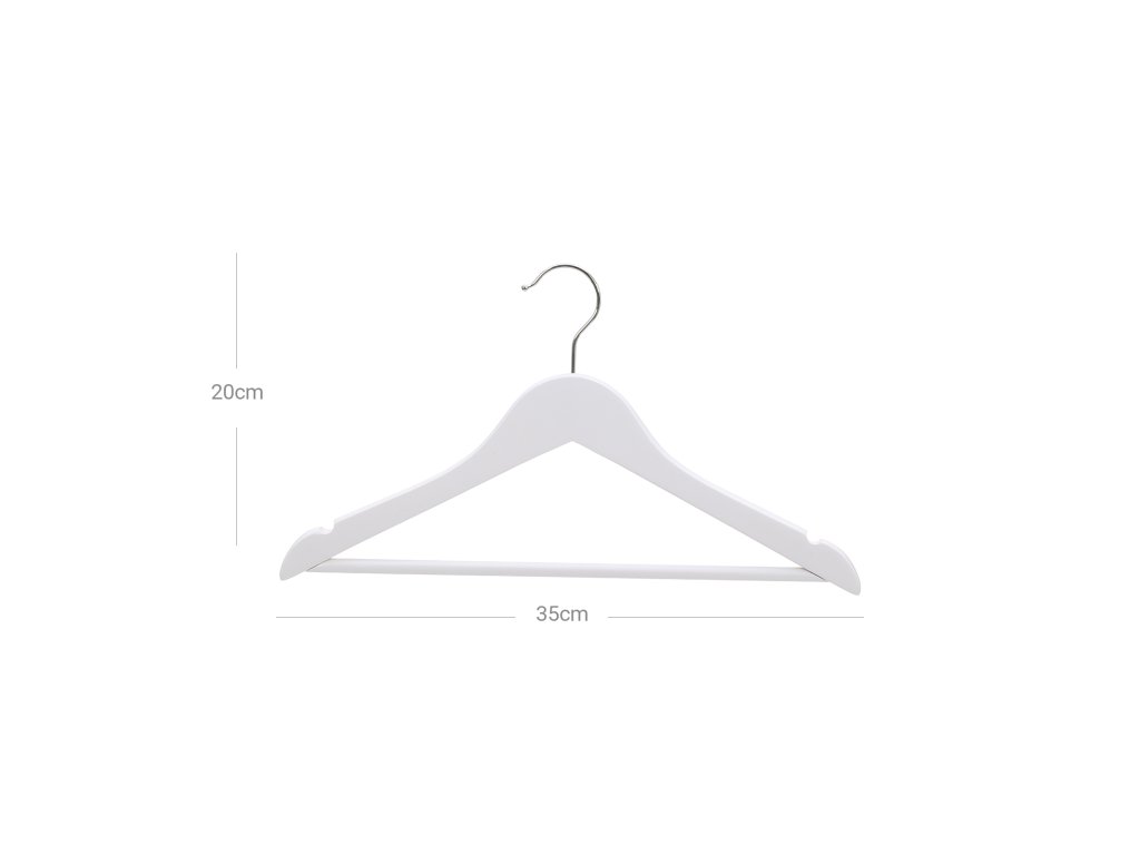 Dětská ramínka z masivního dřeva, 10 balení robustních dětských ramínek na oblečení, s tyčí na kalhoty, zářezy na ramena, 360° otočné háčky, 35 x 1,2 x 20 cm, bílá.