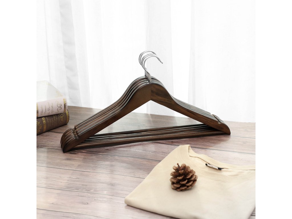 Věšáky z masivního dřeva Tyto elegantní věšáky z masivního dřeva mají hladký, ručně leštěný povrch, který nepoškodí vaše oblečení a udrží ho v perfektní kondici.Odolná pevnost Tato ramínka jsou vyrobena z vysoce kvalitního javorového dřeva, jsou pevná a odolná a lze na ně zavěsit oblečení ze všech ročních období, včetně zimních bund nebo kabátů o hmotnosti až 5 kg.Zavěšení bez hrbolů Už žádné trapné hrboly na ramenou vašich obleků; tato dřevěná ramínka jsou zakřivená tak, aby kopírovala vaše ramena a dobře se starala o vaše jemné oblečení.Otočné háčky Vysoce kvalitní kovové háčky na těchto věšácích se otáčejí o 360°, takže i když omylem pověsíte oblečení špatným směrem, lze je snadno vyměnit.Protiskluzové a dárkové Protiskluzové drážky ve tvaru písmene U a protiskluzová tyč na kalhoty zabraňují sklouznutí oblečení a kalhot; z věšáku můžete také vytvořit jedinečný dárek pro rodinu a přátele.| Kategorie: | Šatní ramínka |