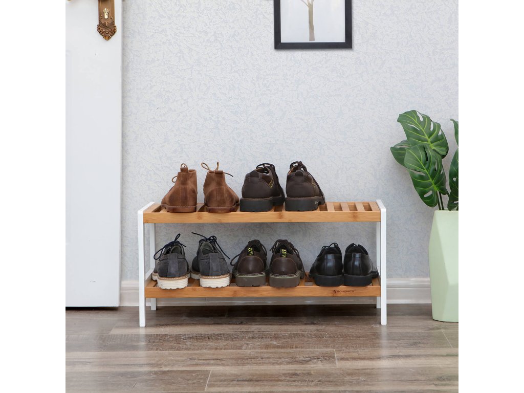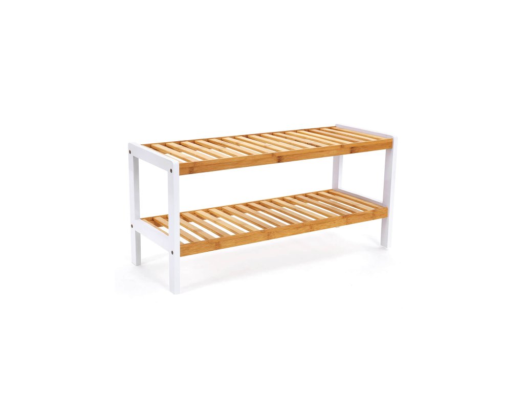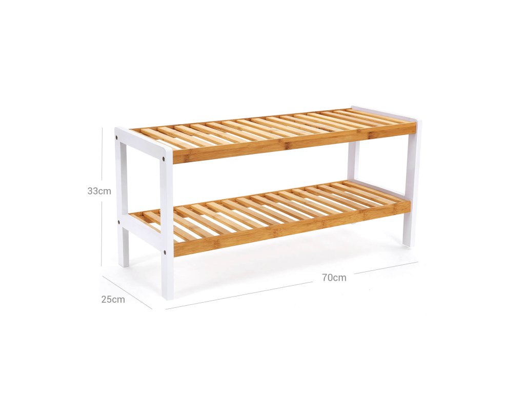 Dvoupatrový bambusový botník, úložný regál, 70 x 26 x 33 cm.