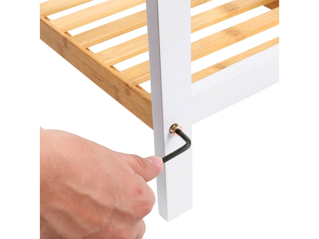 Vše je pod kontrolou: Pokud musíte vždy ráno dlouhé hodiny hledat ten správný pár bot, tento dvoupatrový botník je jako stvořený. Boty, baleríny a tenisky tak máte vždy po ruce a pěkně vedle sebe.Přírodní pevnost: tento organizér na boty je vyroben výhradně z bambusu. Tato police je vyrobena z obnovitelného a přírodního materiálu, vnese do vašeho domova závan čerstvého vzduchu a je také velmi robustní (statická nosnost na úroveň: 10 kg).Jedna police, mnoho způsobů použití: tento kus nábytku neslouží pouze jako botník. Díky kompaktním rozměrům 70 x 26 x 33 cm je ideální také jako polička na rostliny v obývacím pokoji, jako polička v koupelně nebo jako minipolička na knihy v ložnici.Připraveno k použití během několika minut: sestavení multifunkční police nebylo nikdy tak snadné. Jednoduše připojte dvě police k bočním rámům a můžete uspořádat své boty.Co získáte: stojan na boty z bambusu, který má 2 police. Dopřejte si tedy tento regál a ukládejte své boty přehledně - přijímejte své hosty v uklizené předsíni!| Kategorie: | Botníky |