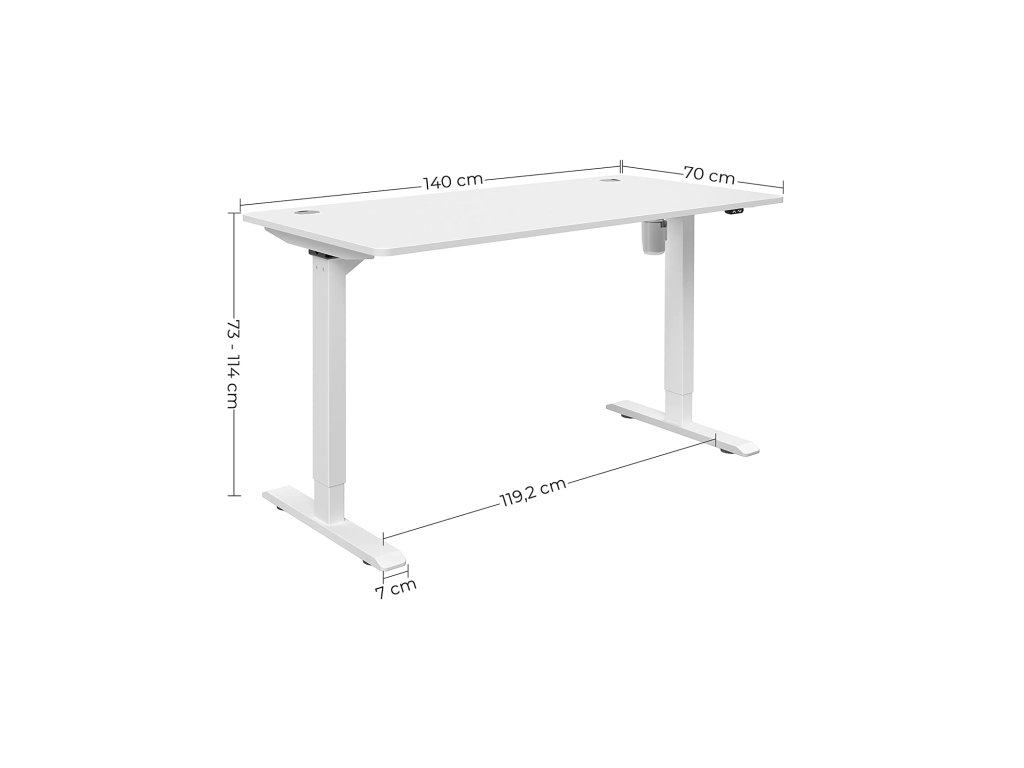 Elektrický psací stůl, výškově nastavitelný, stolní stojan, rám stolu s motorem, 140 x 70 x (73-114) cm, ocel, bílý.