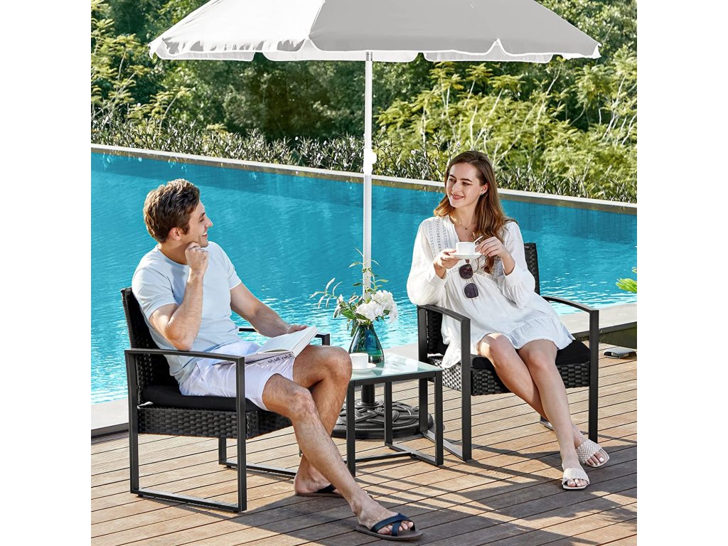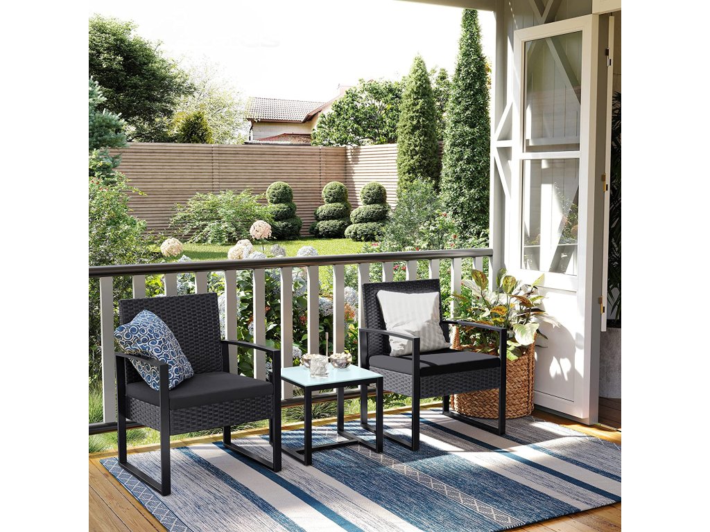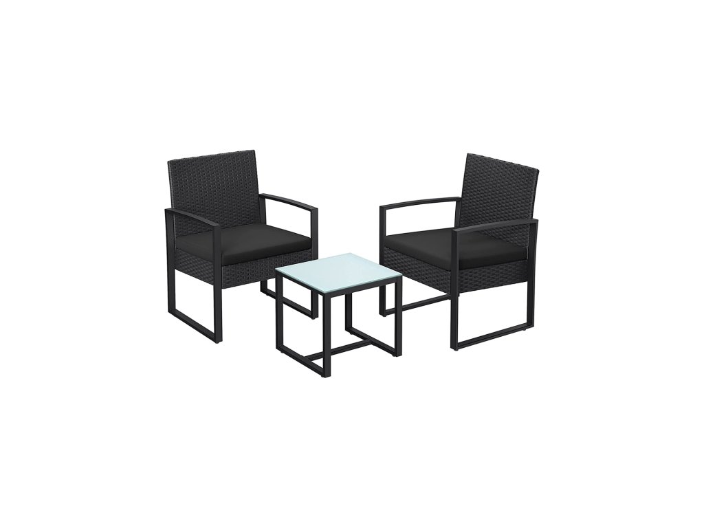 Balkonový zahradní nábytek, polyratan, stůl a 2 židle, nábytek na terasu, snadná montáž, černý.