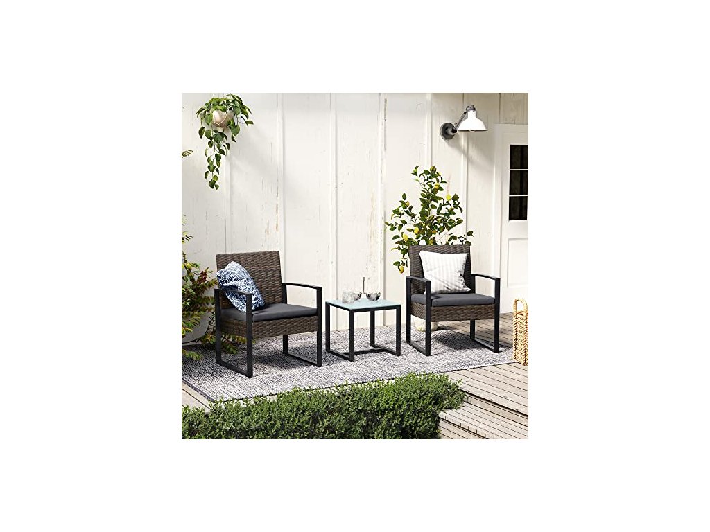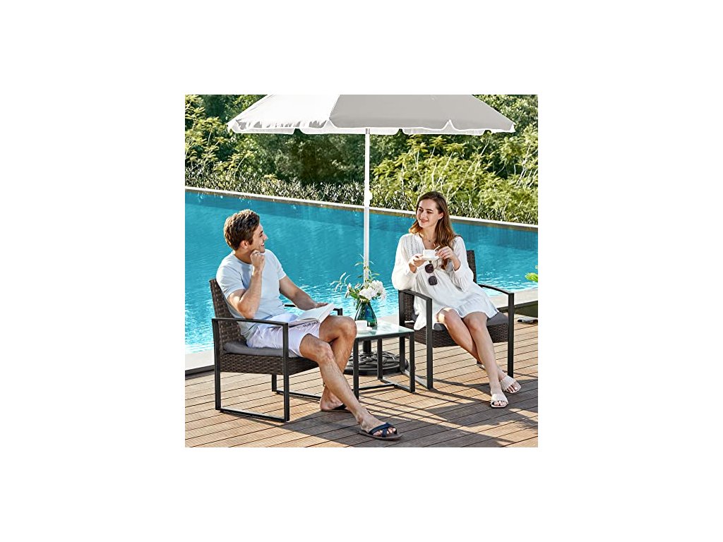Pocit dovolené u vás doma: Chcete se naladit na sváteční atmosféru? Pak je pro vás tato sada nábytku ideální volbou. Díky svým čistým liniím a ratanovému vzhledu dodá vaší zahradě dekorativní nádech.Žádná složitá montáž: Montáž této sady terasového nábytku je jednoduchá, i když nejste žádný kutil! Montážní příslušenství přesné vyvrtání otvorů a srozumitelný návod usnadňují práci.Stabilní držení: Každá židle vydrží hmotnost až 150 kg. Stůl má ve spodní části přídavnou výztuhu a unese až 30 kg.Pohodlné místo: Na jedno z těchto křesel se jednoduše posaďte, abyste si odpočinuli a načerpali novou energii. 5 cm silné pěnové polstrování, ergonomicky tvarované opěradlo, které se dokonale přizpůsobí vašemu tělu.Používejte podle potřeby: Na balkoně, terase, zahradě a všude tam, kde chcete relaxovat nebo si povídat s přáteli. Nebo můžete balkónový nábytek umístit do interiéru a vytvořit tak jídelní kout nebo útulný čtecí koutek.| Kategorie: | Zahradní sestavy |