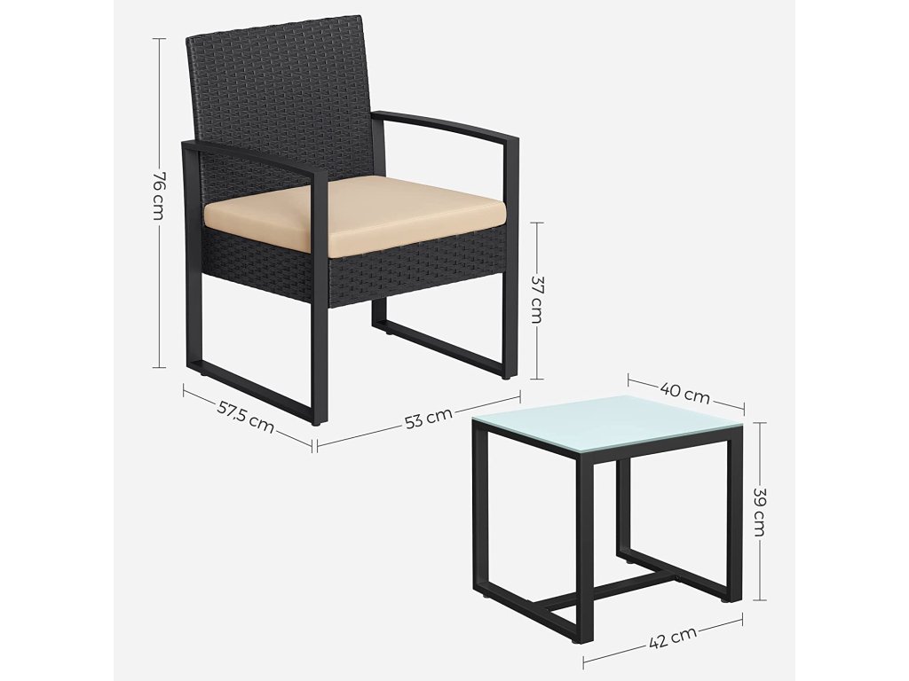 Pocit dovolené u vás doma: Chcete se naladit na sváteční atmosféru? Pak je pro vás tato sada nábytku ideální volbou. Díky svým čistým liniím a ratanovému vzhledu dodá vaší zahradě dekorativní nádech.Žádná složitá montáž! Montáž této sady terasového nábytku je jednoduchá, i když nejste žádní kutilové! Montážní příslušenství přesně vyvrtané otvory a jasné pokyny usnadňují práci.