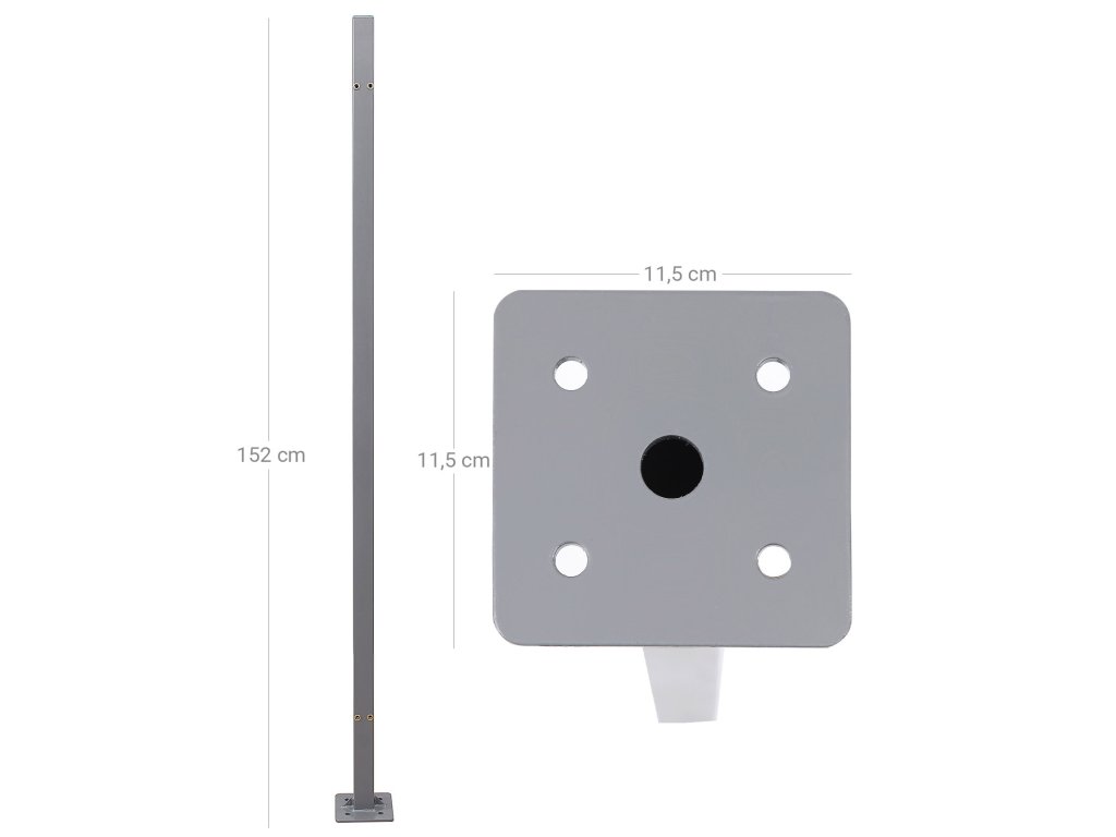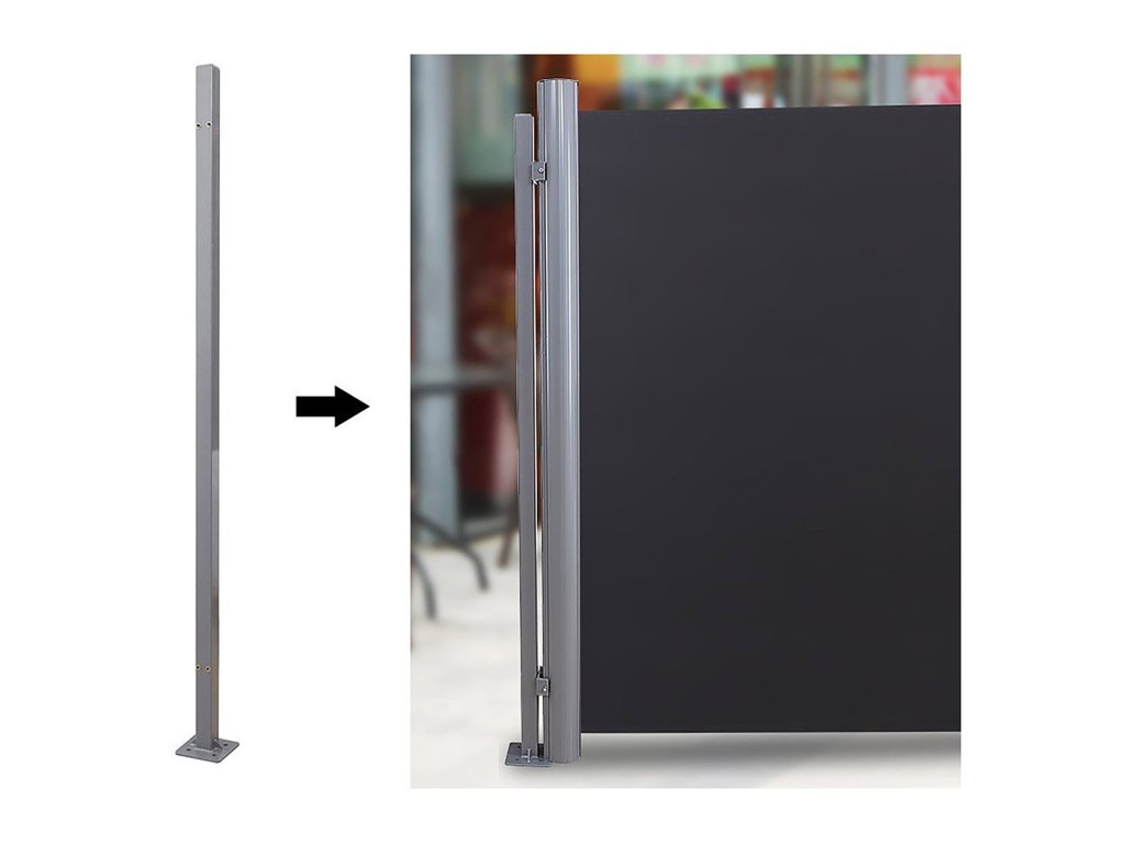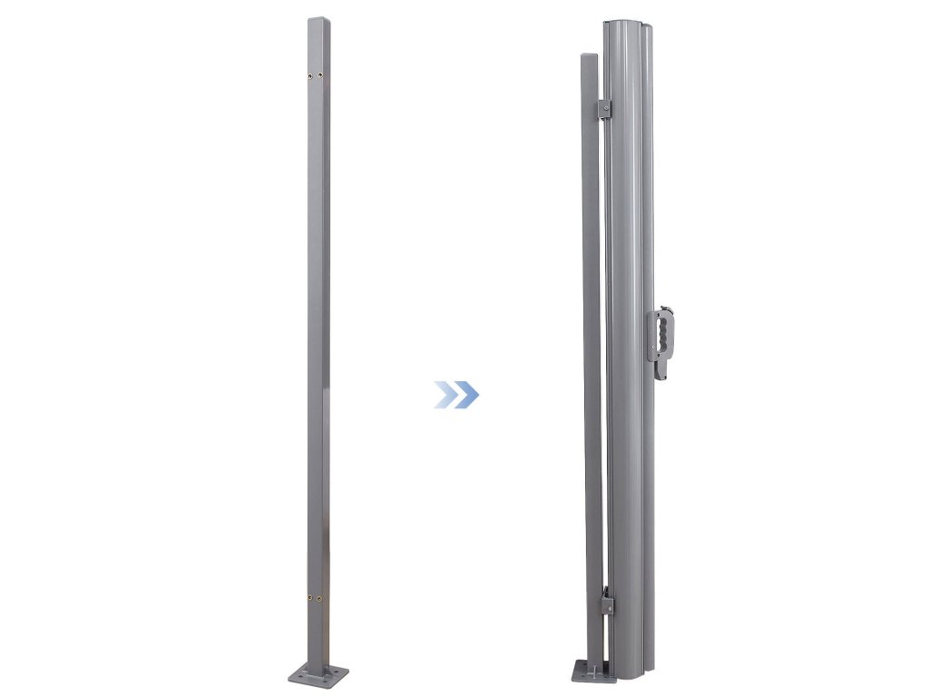 Sloupek držáku kazety, výsuvné příslušenství pro jednostrannou markýzu, není nutná montáž markýzy na stěnu, příslušenství pro montáž na podlahu, 11,5 x 11,5 x 152 cm, šedá.