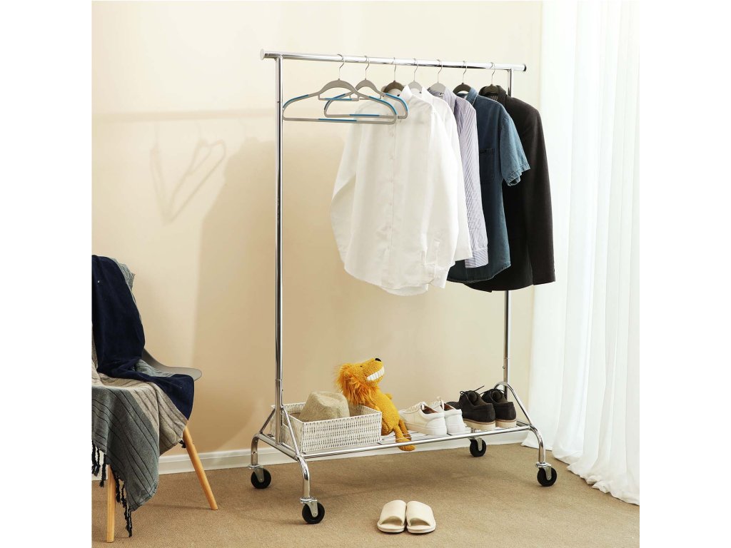 Kovová tyč na oděvy s policí na boty, maximální zatížení 50 kg, chrom.