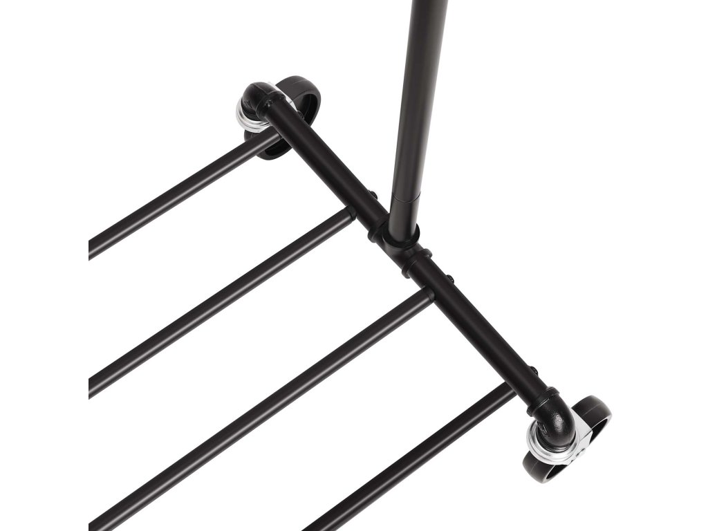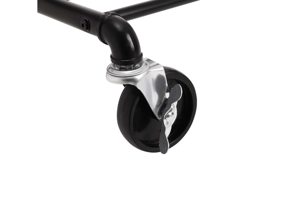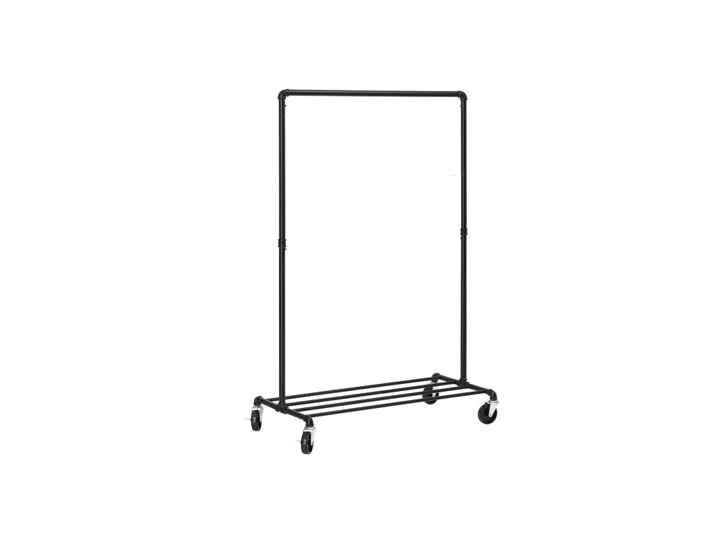 Kovový věšák na oděvy na kolečkách, nosnost 90 kg, průmyslový design, stojan na kabáty s 1 kolejnicí na oděvy a policí, pro ložnici a prádelnu, černý.