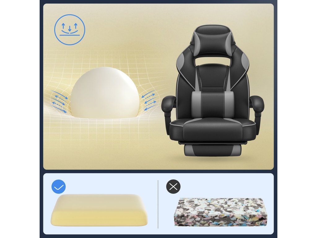 ZÍSKAT PRODUKTIVNÍ DEN: Nedovolte, aby nepohodlná kancelářská židle omezovala vaši produktivitu. Tato kancelářská židle s nastavitelnou výškou 47-57 cm a opěradlem nakloněným v úhlu 90-135 stupňů umožňuje adekvátní polohu při sezení, takže můžete efektivně pracovat nebo se bavit.Nekonečné pohodlí: Tato herní židle s nastavitelným opěradlem je vybavena bederním polštářem, opěrkou na nohy, polštářem a tichými kolečky, takže vaše tělo může při soustředění relaxovat - pohodlný luxus pro vaše studium.Důležité informace: vnitřní část sedáku, opěradla a bederního polštáře je vyrobena z rozměrově stabilní prémiové pěny. Ať už chcete na této herní židli pracovat nebo se bavit, ergonomické opěradlo se dokonale přizpůsobí tvaru vašeho těla a poskytuje pevnou oporu.Bezpečné sedadlo, snadná montáž: vratný válec této židle byl testován společností TÜV Rheinland a splňuje požadavky normy EN16955: 2017-04, třída 3 (Tstreport č. : 182836, vlastník zprávy: dodavatel). Tuto židli sestavíte pouhým utažením několika šroubů a je hotovo!.CO ZÍSKÁTE: Ergonomická kancelářská židle s odolným a snadno čistitelným povrchem z umělé kůže PU, která se dokonale hodí do vaší domácnosti nebo kanceláře. Navíc získáte skvělý způsob, jak uvolnit své tělo a mysl při práci nebo zábavě.| Kategorie: | Herní křesla |