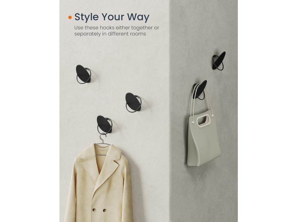 【VŠestranné】Sadu 4 háčků lze použít v kombinaci nebo samostatně, takže se skvěle hodí do různých prostor, jako jsou chodby, obývací pokoje a ložnice. Udržujte si pořádek v příslušenství a nepořádek v domácnosti.