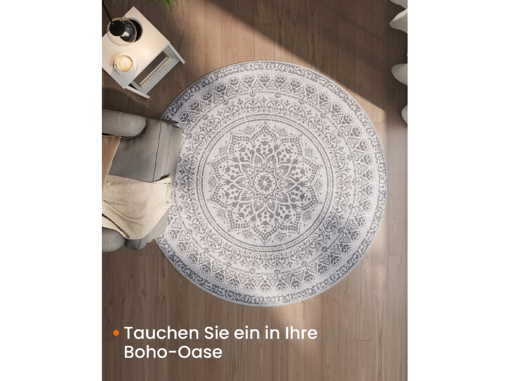 Koberec, průměr 160 cm, protiskluzový kulatý koberec, domácí dekorace, do obývacího pokoje, ložnice, lze prát v pračce, boho styl, holubičí šedá.