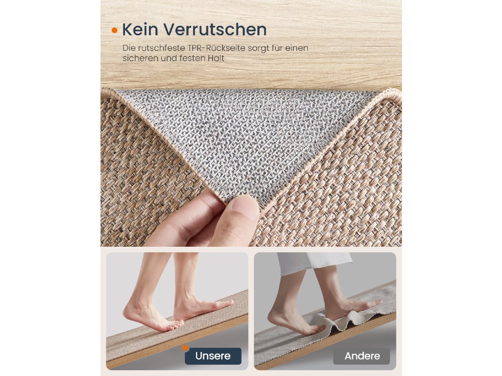 【NESKLUZAVÝ A VŠESTRANNÝ】 Tento koberec z umělé juty s podkladem z TPR má výjimečné protiskluzové vlastnosti, které zajišťují, že zůstane bezpečně na svém místě na různých typech podlah, včetně tvrdého dřeva. dlaždice a další