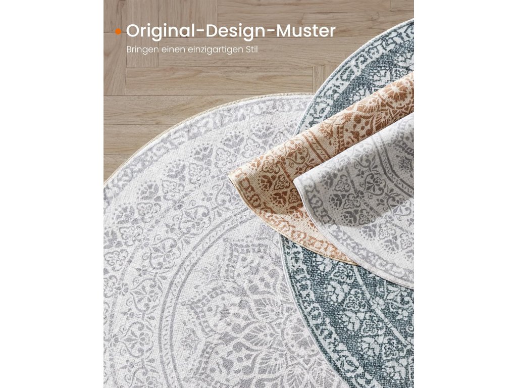 Koberec do obývacího pokoje, průměr 120 cm, kulatý koberec do obývacího pokoje, protiskluzový, do ložnice, na jednu pohovku, lze prát v pračce, v boho stylu, šedá.