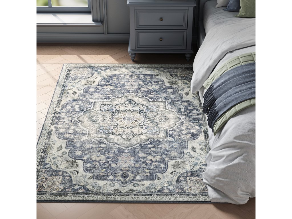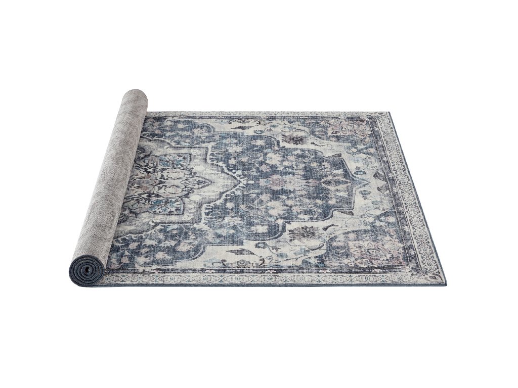 Koberec do obývacího pokoje 120 x 170 cm, protiskluzový koberec, tradiční vintage styl, lze prát v pračce, šedý.