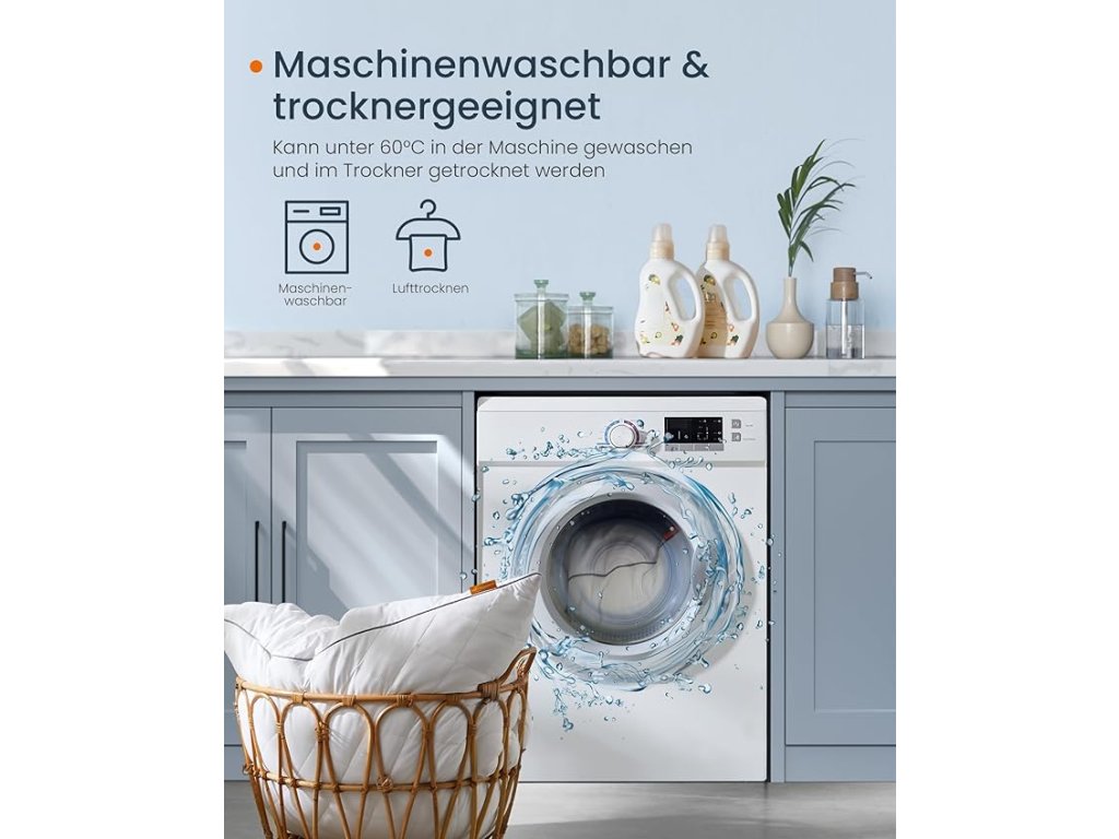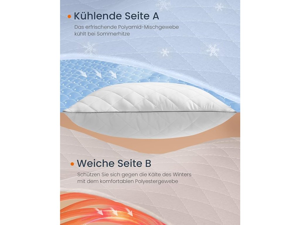 Oboustranný polštář 80 x 80 cm, chladivý měkký potah, 1200g výplň, pro zimu i léto, lze prát v pračce a sušit v sušičce na 60 °C, bílá.
