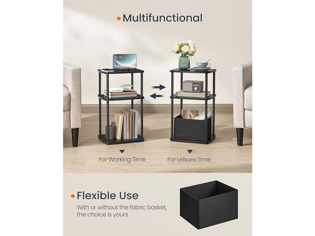 【PŘÍKLAD ÚLOŽNÉHO PROSTORU】 Tento odkládací stolek nabízí 3 police a další látkový koš - ideální řešení pro ukládání drobností a věcí!