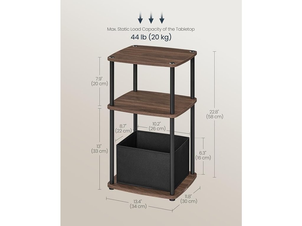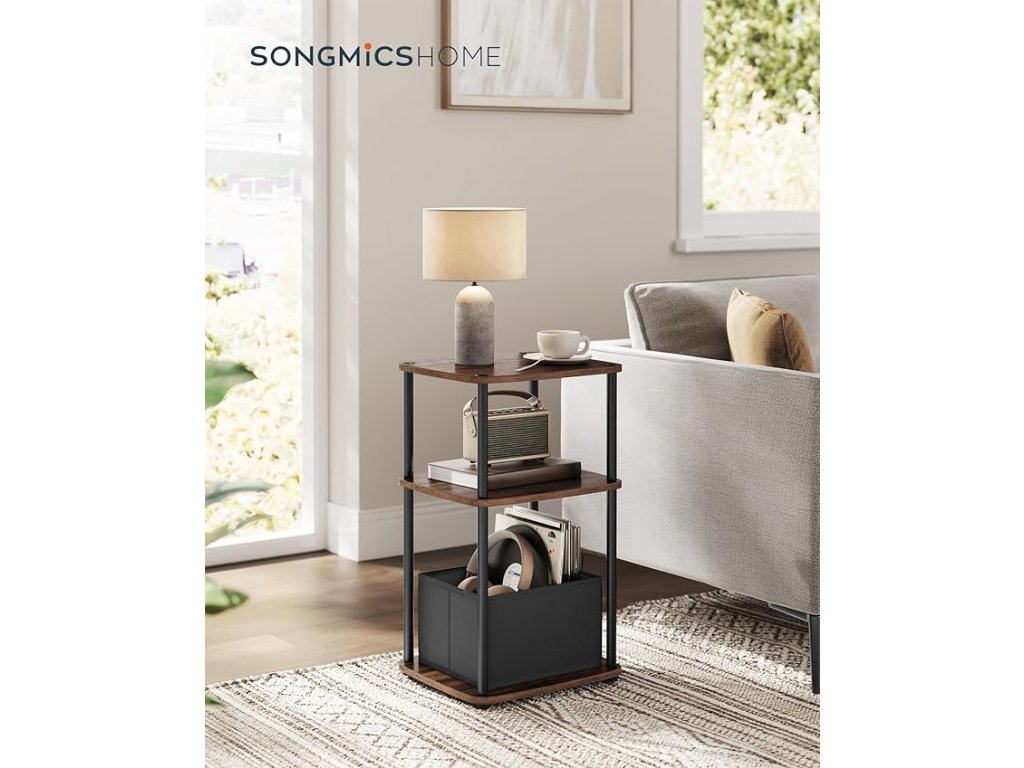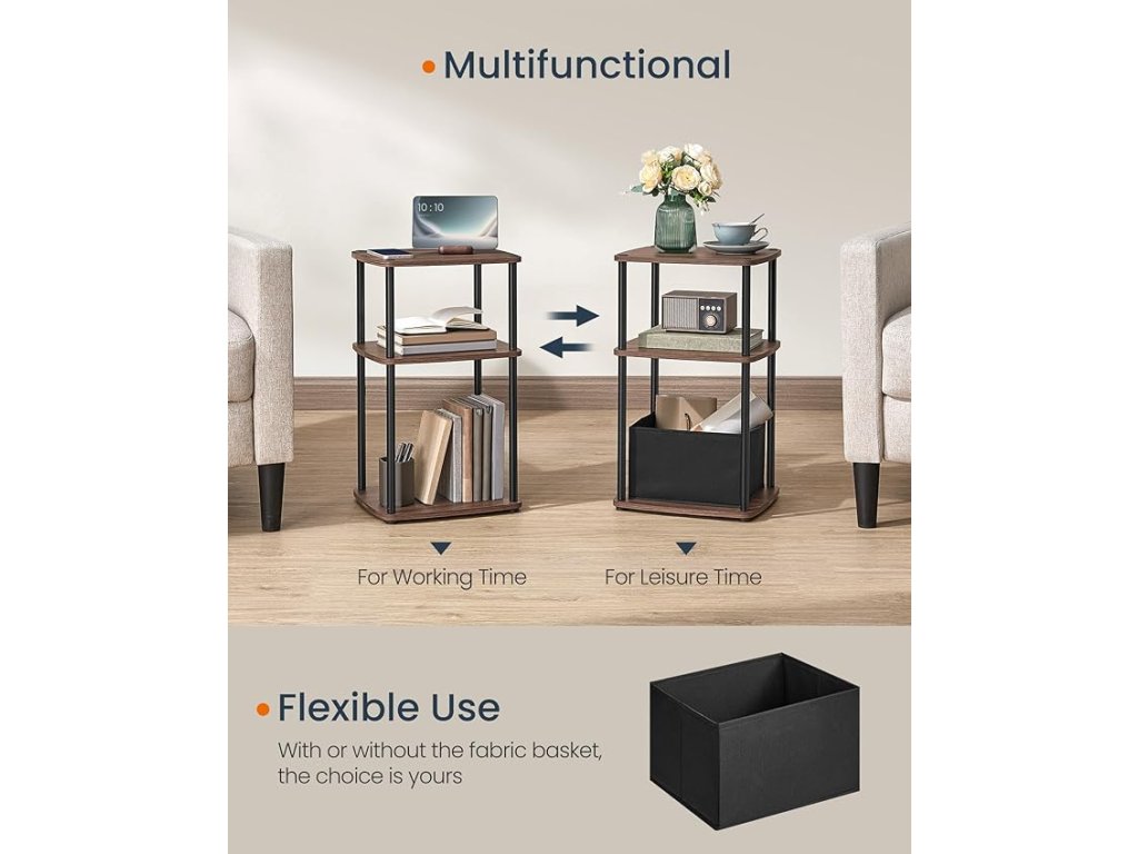 【PŘÍKLAD ÚLOŽNÉHO PROSTORU】 Tento odkládací stolek nabízí 3 police a další látkový koš - ideální řešení pro ukládání drobností a věcí!