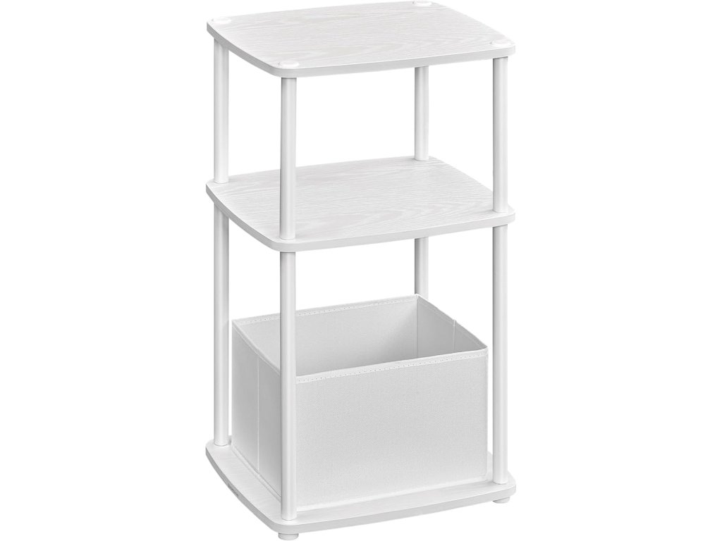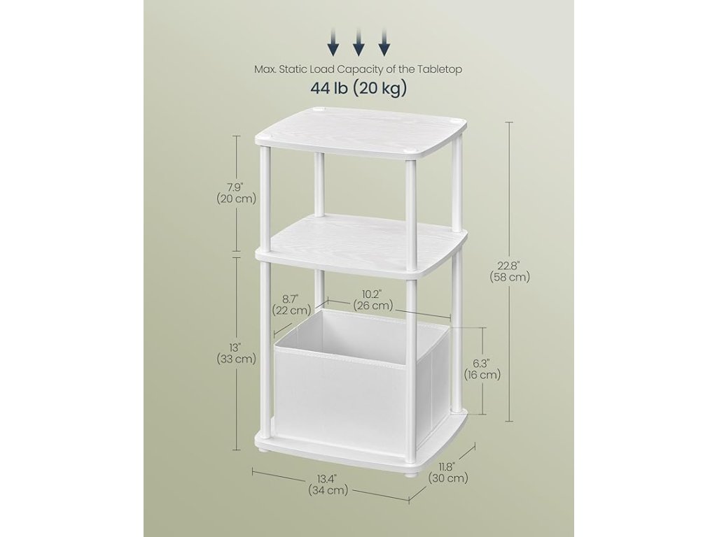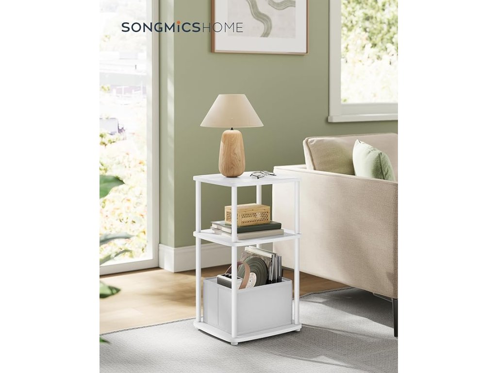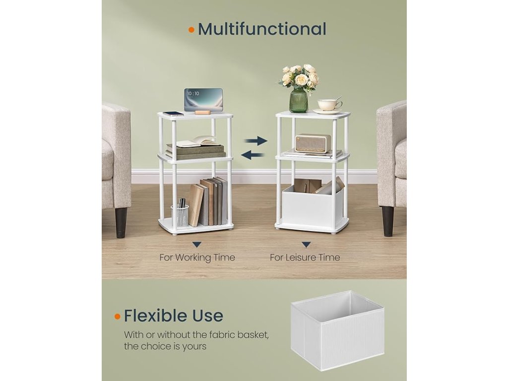 【PŘÍKLAD ÚLOŽNÉHO PROSTORU】 Tento odkládací stolek nabízí 3 police a další látkový koš - ideální řešení pro ukládání drobností a věcí!
