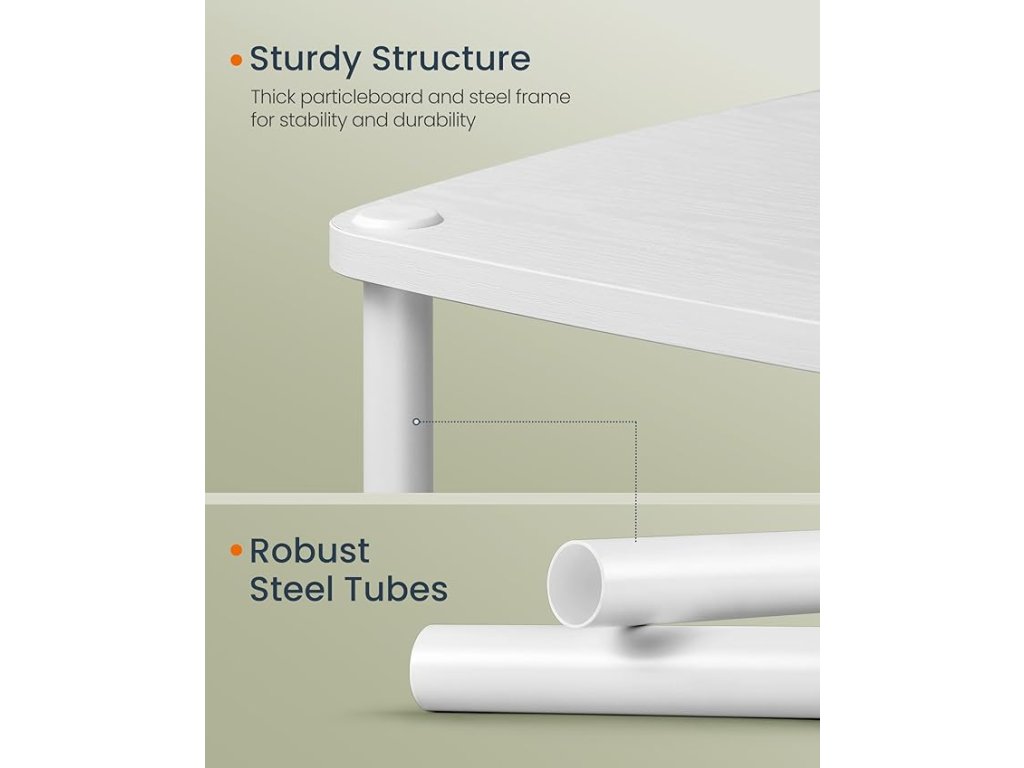 PEVNÝ A ODOLNÝ】 Tento stolek je vyroben z kvalitní dřevotřískové desky a robustních ocelových trubek o průměru 19 mm a je robustní, takže vám bude po dlouhá léta sloužit jako spolehlivý společník.