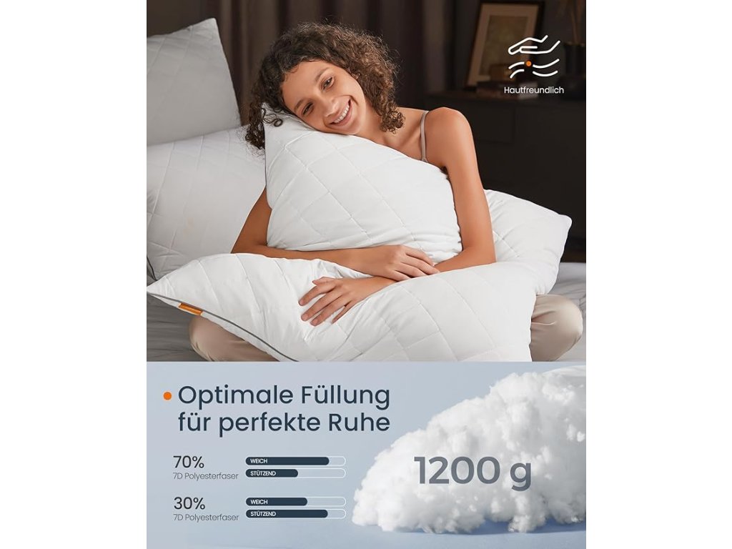 Dvě strany pro celoroční pohodlí: Náš oboustranný polštář nabízí jednu stranu pro každou potřebu: chladivou látku proti letnímu horku a příjemný polyester pro zimní chlad. Při střídání ročních období poskytuje celoroční pohodlí.Ponořte se do měkkosti: tento polštář je naplněn vysoce kvalitními polyesterovými vlákny o hmotnosti 1200 g a zabalí vás do té nejvyšší měkkosti. Je bez zápachu a pružný a umožní vám každou noc jemně vklouznout do říše snů.Méně potu, lepší spánek: potah tohoto polštáře je vybaven inovativní vrstvou odolnou proti potu. Tato chytrá konstrukce zabraňuje tvorbě žmolků, prodlužuje životnost a zajišťuje klidný spánek.Dlouhotrvající elegance: náš polštář s kosočtvercovým prošitím a kontrastním zesíleným lemem kombinuje eleganci s odolností. Pečlivost a řemeslné zpracování zajišťují, že polštář netahá nitě.Snadná údržba: tento polštář lze prát v pračce a sušit při teplotě do 60 °C. Zůstává tedy svěží a čistý, zachovává si svou měkkost a poskytuje snadnou péči pro méně stresu v každodenním životě!| Kategorie: | Polštáře |