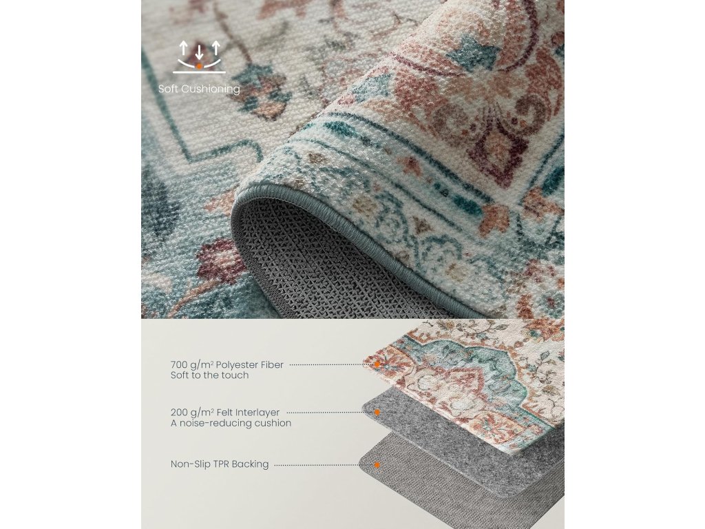 Měkké polstrování: Vychutnejte si luxusní pocit z polyesterových vláken o hmotnosti 700 g/㎡ v kombinaci s plstěnou mezivrstvou o hmotnosti 200 g/㎡. poskytuje výjimečnou měkkost pro první krok z postele nebo pro pohodlné lenošení.【Vintage Charm】 S tímto kobercem zažijete jedinečnou kombinaci nadčasové elegance a moderního pohodlí. Její složité vzory a syté barvy vytvářejí hřejivou a příjemnou atmosféru a promění každý prostor s nostalgickým kouzlem.