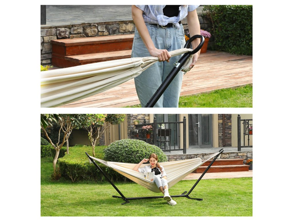 Kde byste chtěli relaxovat? Na zahradě a užívat si čas s dětmi, nebo na terase pozorovat hvězdy? Ať tak či onak, tato houpací síť se stojanem posune místo na vyšší úroveň. Nebo můžete houpací síť vyjmout a sbalit ji do tašky na kempování!.