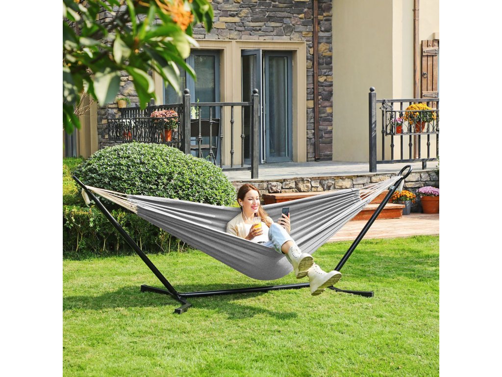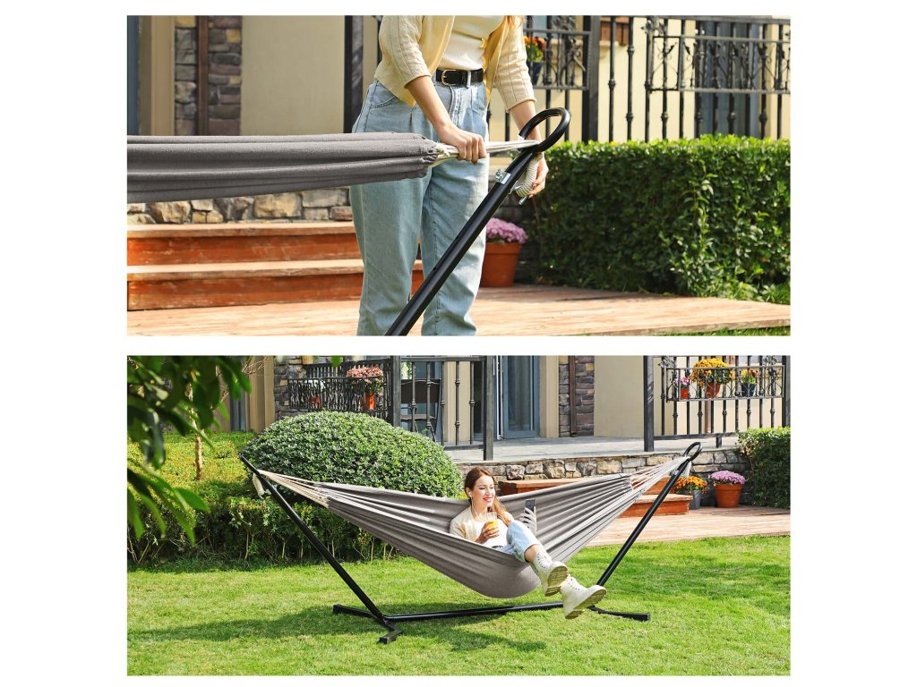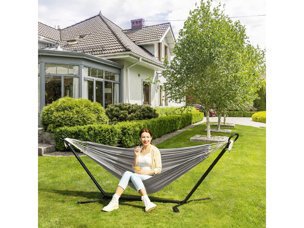 Kde byste chtěli relaxovat? Na zahradě a užívat si čas s dětmi, nebo na terase pozorovat hvězdy? Ať tak či onak, tato houpací síť se stojanem posune místo na vyšší úroveň. Nebo můžete houpací síť vyjmout a sbalit ji do tašky na kempování!.