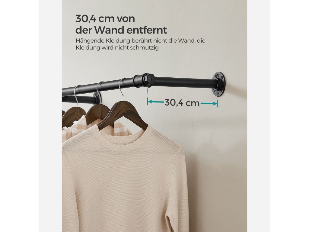 Nástěnný věšák na oděvy, úspora místa 30,4 x 170 x 7 cm, nosnost 68 kg, snadná montáž pro malé místnosti, černá barva.