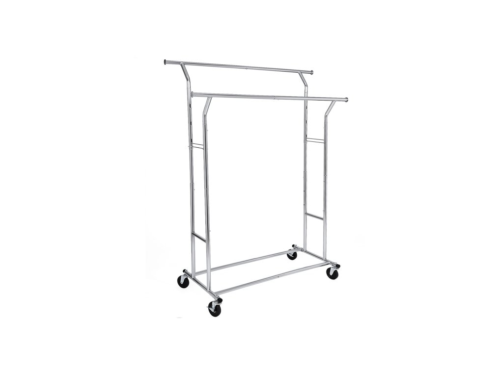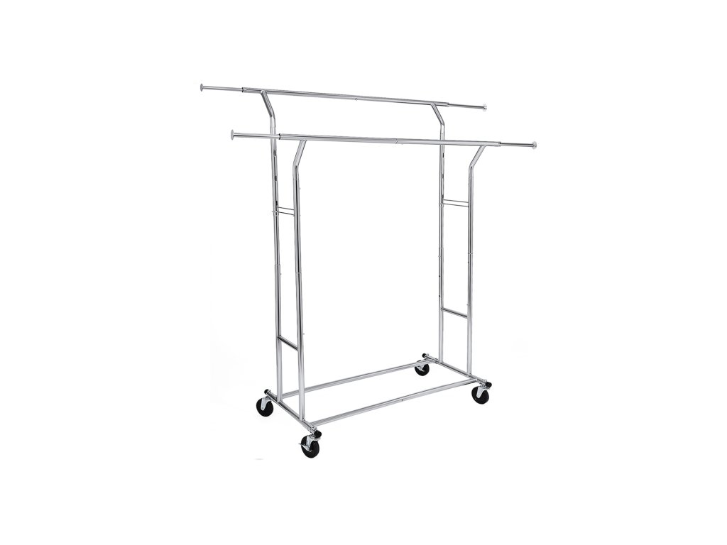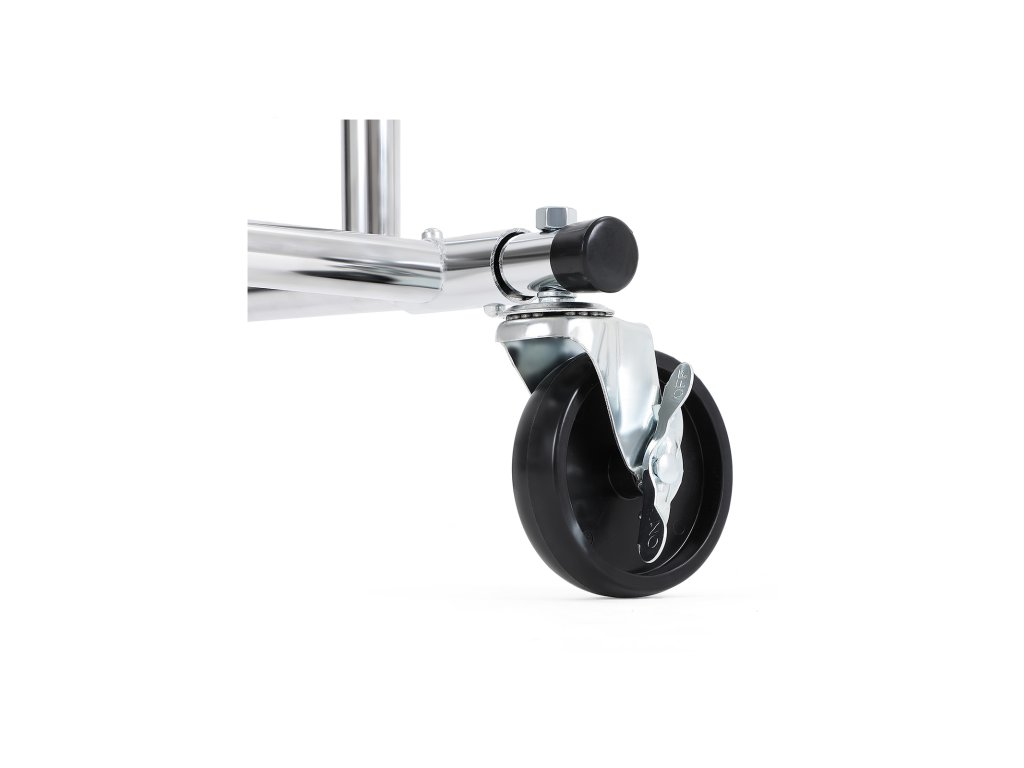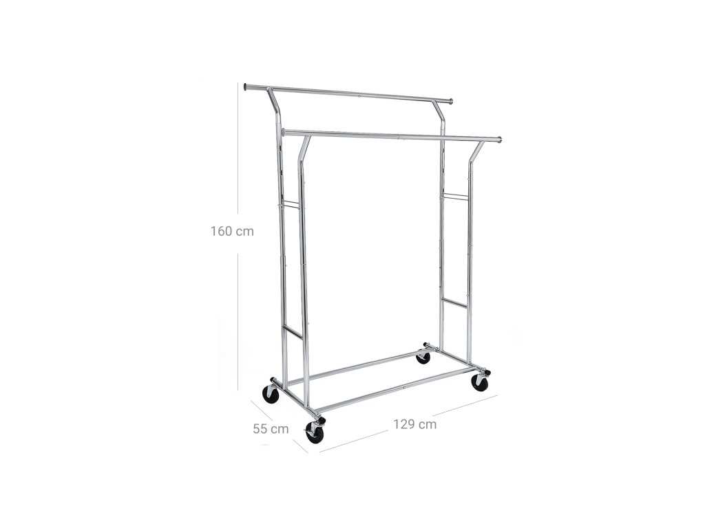 Kovový stojan na kabáty, 110kg, na kolečkách, délka 129-169 cm, chromový.